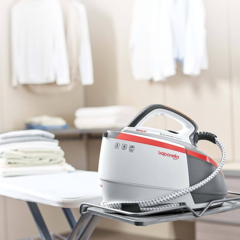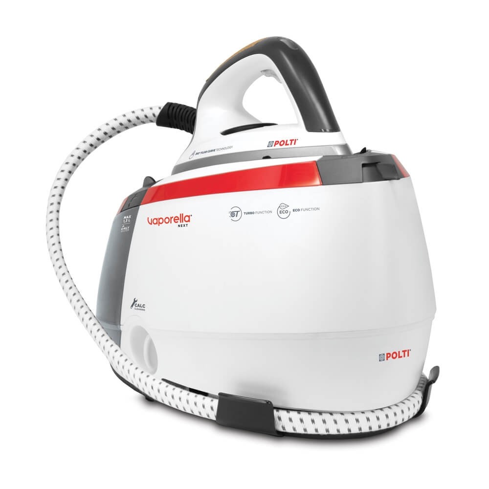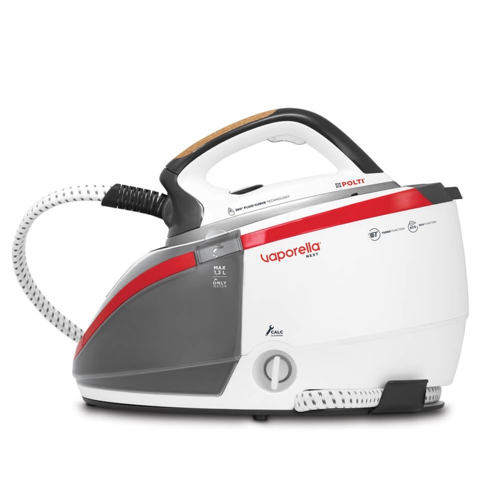 Design 100% made in Italy, moderna e compatta: Polti Vaporella Next è l'unione di potenza, performance e precisione per prestazioni al top. Polti Vaporella Next è il ferro da stiro disegnato in Italia che ti permette di stirare in modo semplice su tutti i tessuti grazie alla potente caldaia ad autonomia illimitata da 6 bar e alla pompa da 15 bar. L'innovativa 360° Fluid Curve Technology della piastra garantisce ottimi risultati. Una preziosa riduzione dei consumi Per ridurre i consumi, scegli la funzione Eco che assicura un risparmio di energia del 29% e di acqua del 26%*. Turbo: risultati garantiti! Con la funzione Turbo la caldaia ad alta pressione emette un potente getto di vapore che elimina le pieghe più difficili. Stiratura perfetta Con la piastra in alluminio multidirezionale con rivestimento double ceramic i risultati sono garantiti alla prima passata. Progettata in Italia per una stiratura rapida Risultati eccellenti grazie alla potente caldaia da 6 bar e alle 3 diverse funzioni attivabili. Steam Pulse: massima comodità Per una stiratura più semplice e veloce attiva lo Steam Pulse con un doppio clic sul pulsante del ferro. Pulire la caldaia è semplice Preserva la caldaia dalle incrostazioni di calcare effettuando regolarmente il ciclo di pulizia Calc Cleaning. Lunghe sessioni di stiratura Riempi in ogni momento il capiente serbatoio da 1,3 L per lunghe sessioni di stiratura senza interruzioni. Stira senza pensieri La funzione di spegnimento automatico si attiva dopo 10 minuti di inutilizzo: così si risparmia energia e si è più sicuri. Riponi il ferro in sicurezza Con la chiusura blocca ferro e i pratici ganci laterali puoi trasportare Polti Vaporella Next con massima sicurezza. **Consumi in % in funzione ECO rispetto a funzione TURBO.