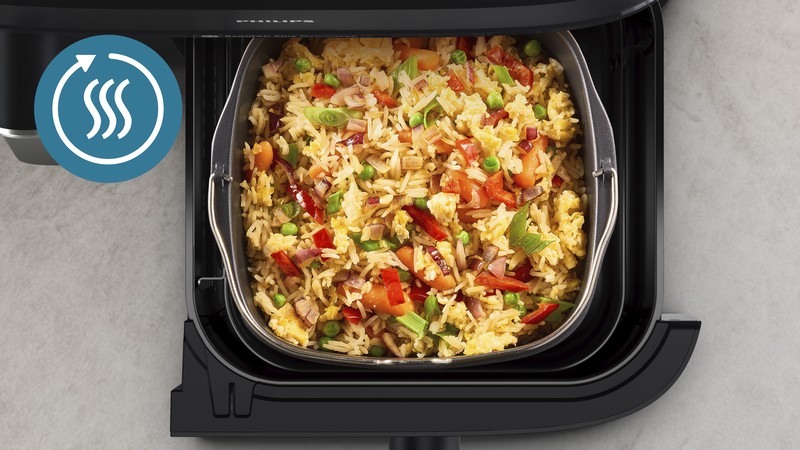 La cena di ieri per pranzo? Perché no. La funzione di riscaldamento usa anche il vapore per preservare l'umidità, rendendolo perfetto per riscaldare piatti come il riso o le lasagne che tendono ad asciugarsi nelle friggitrici ad aria o nei microonde tradizionali
