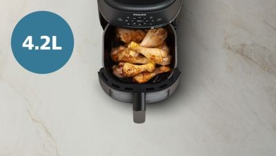 Il design compatto è ideale per ogni cucina, grande o piccola che sia. Il cestello da 4,2 L può contenere fino a 500 g di patatine fritte, 6 cosce di pollo o 500 g di verdure.