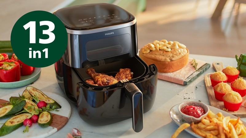 Philips Airfryer offre un mondo di possibilità: frittura, cottura al forno, cottura alla griglia, cottura arrosto, essiccamento, tostatura, decongelamento, riscaldamento e molto altro ancora.