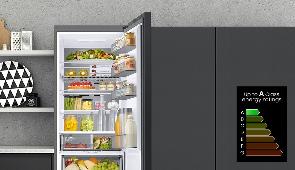 Questo frigorifero extra large da 390 litri* garantisce una capacità interna superiore con una profondità standard di 600 mm, allineandosi perfettamente con gli altri mobili della cucina. L’isolante a elevata efficienza della tecnologia SpaceMax™ consente di ridurre notevolmente lo spessore delle pareti, creando più spazio per la conservazione degli alimenti, senza antiestetiche sporgenze esterne.