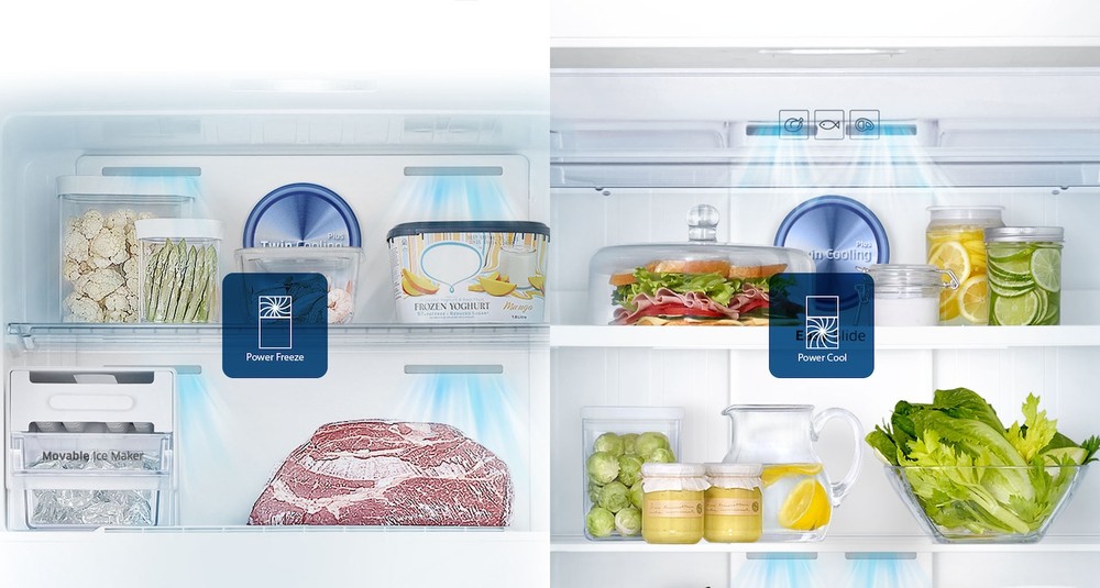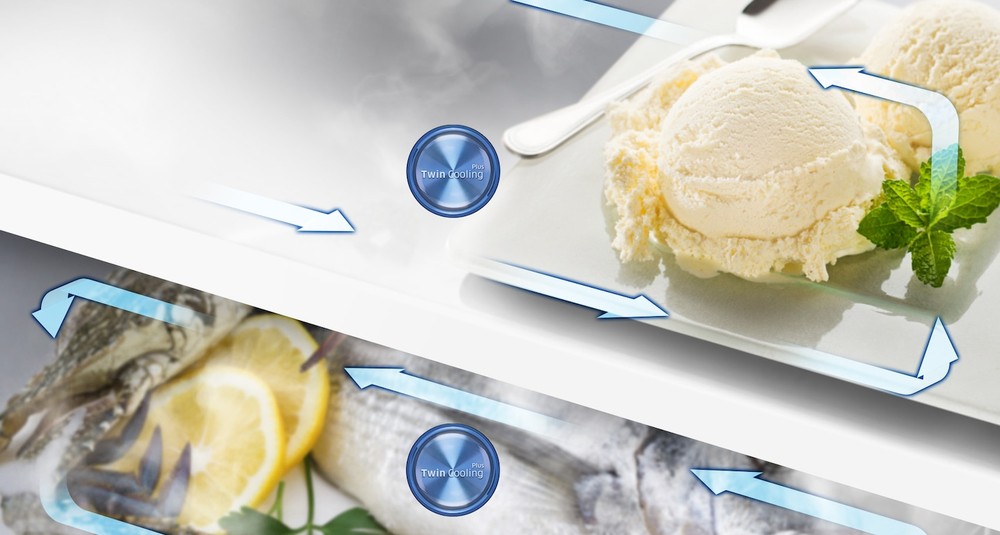 La tecnologia Twin Cooling Plus™ è in grado di creare un ambiente favorevole per la conservazione dei cibi, raggiungendo nel vano frigo un livello di umidità fino al 70%, rispetto al 30% di un modello tradizionale. In questo modo gli alimenti rimangono freschi più a lungo senza seccarsi.