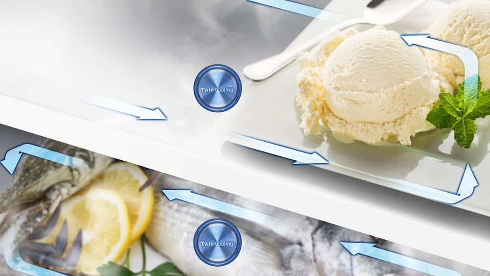 La tecnologia Twin Cooling Plus™ è in grado di creare un ambiente favorevole per la conservazione dei cibi, raggiungendo nel vano frigo un livello di umidità fino al 70%, rispetto al 30% di un modello tradizionale. In questo modo gli alimenti rimangono freschi più a lungo senza seccarsi.