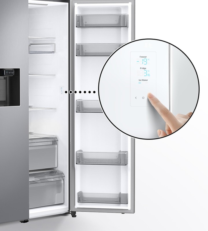 Libera spazio per conservare gli alimenti, senza rimanere a corto di ghiaccio con una macchina del ghiaccio integrata nella porta. La sua posizione consente di avere spazio extra nel freezer, senza influire sulla quantità di ghiaccio prodotta. E il rivestimento in plastica trasparente permette di vedere quanto ne è rimasto.