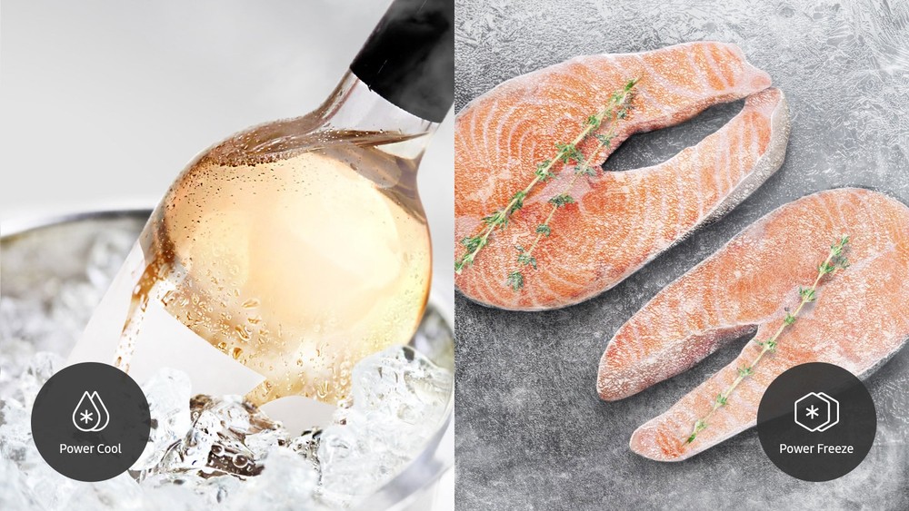 Anche la velocità è importante. Premendo un pulsante, la funzione Power Cool fa circolare velocemente aria fredda nel frigorifero per raffreddare rapidamente cibi e bevande. La funzione Power Freeze crea un rapido getto di aria fredda nel freezer. È il massimo per congelare o raffreddare i cibi al punto giusto, ma anche per preparare il ghiaccio.