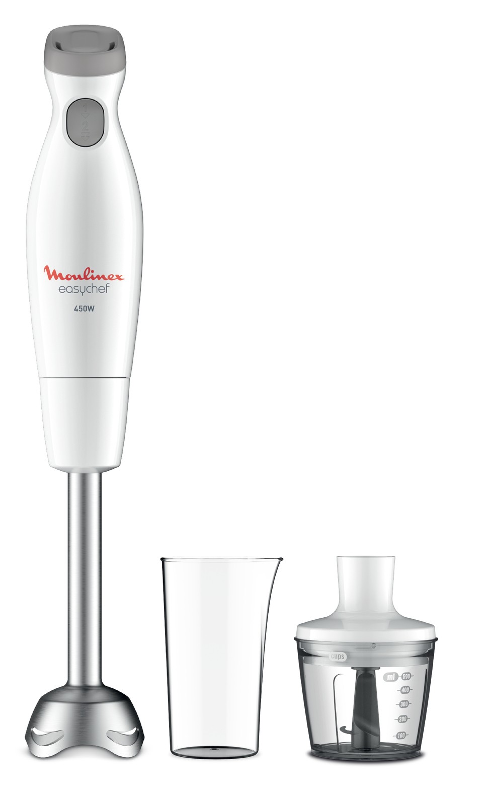 Moulinex DD4521 Easychef, Mixer ad Immersione 2in1, con Bicchiere da 800 ml e Accessorio Tritatutto da 500 ml, 2 Impostazioni di Velocità, Facile da Pulire, Potenza 450 W, Frullatore ad immersione, 0,8 L, 450 W, Bianco