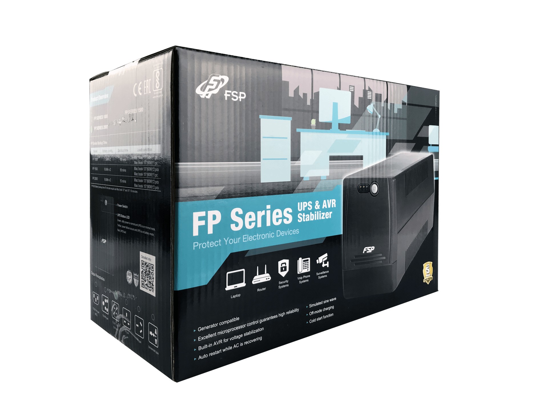 FSP FP 2000. Topologia UPS: A linea interattiva, Potenza in uscita: 2 kVA, Potenza in uscita: 1200 W. Tipo di uscita AC: Tipo F, Quantità prese AC: 4 presa(e) AC. Capacità della batteria: 9 Ah, Voltaggio della batteria: 12 V, Tempo di ricarica: 6 h. Fattore di forma: Mini Tower, Colore del prodotto: Nero. Larghezza: 130 mm, Profondità: 320 mm, Altezza: 182 mm