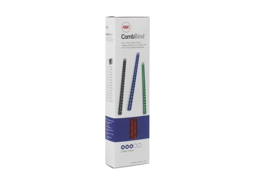 Ideati per i sistemi CombBind, gli anelli plastici CombBind consentono una rilegatura elegante dei documenti. Disponibili in colori assortiti e in 14 dimensioni, fino a 450 fogli, gli anelli in PVC sono resistenti e flessibili. Una volta rilegate, le pagine sono perfettamente piatte per fotocopiarle o aggiungervi appunti.