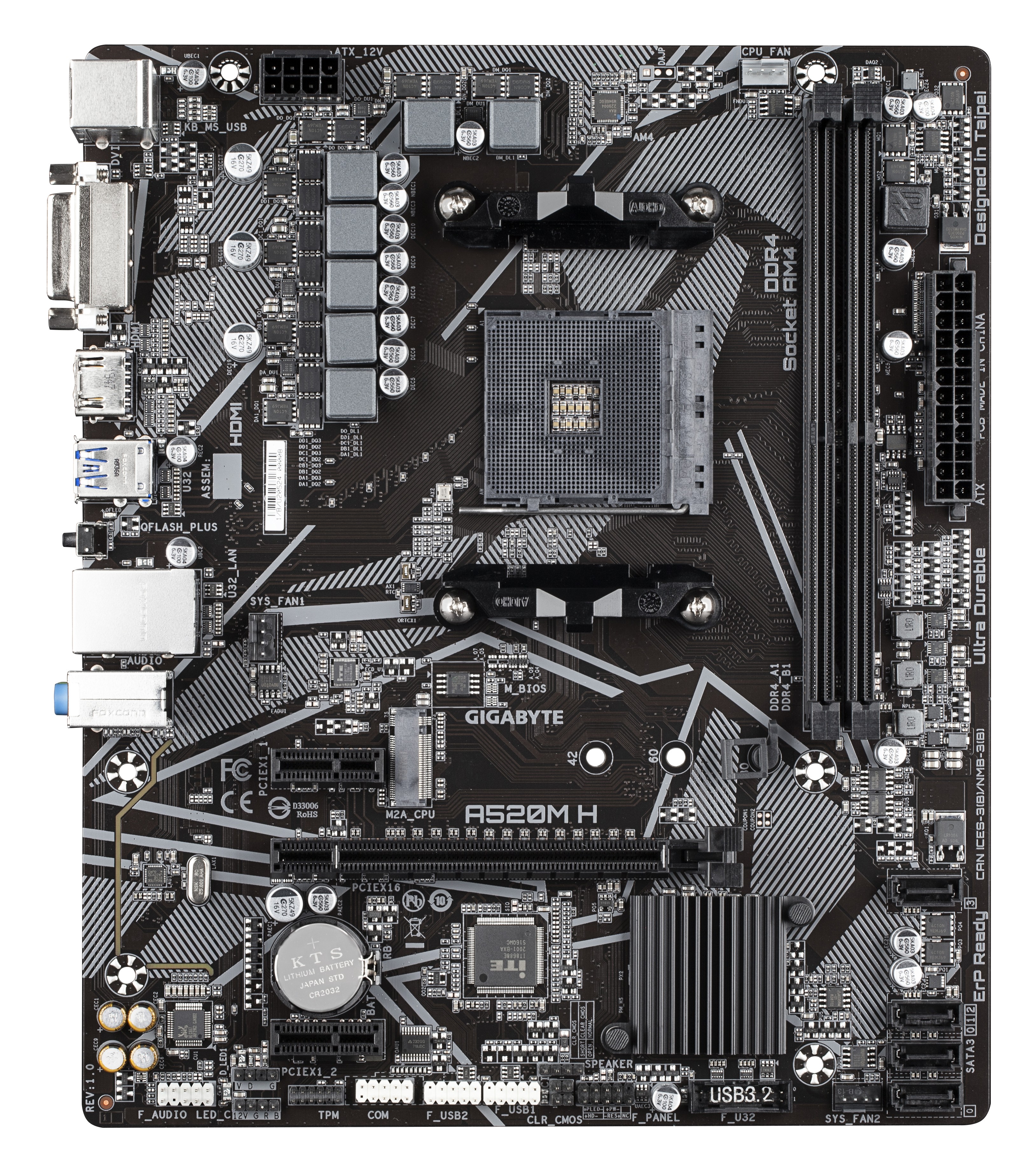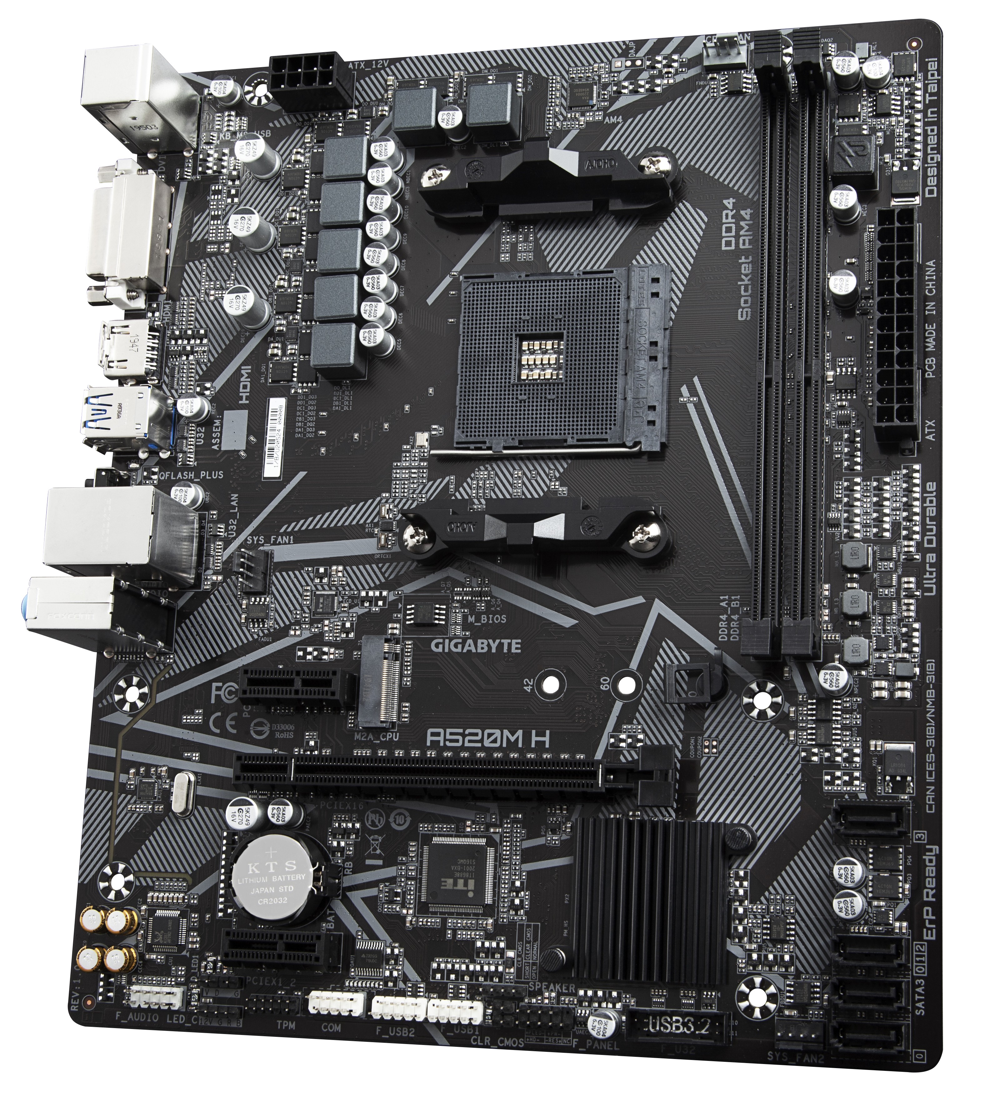 Gigabyte A520M H, AMD, Socket AM4, 3rd Generation AMD Ryzen™ 3, 3rd Generation AMD Ryzen 5, 3rd Generation AMD Ryzen™ 7, 3rd..., Socket AM4, 64 GB, DDR4-SDRAM