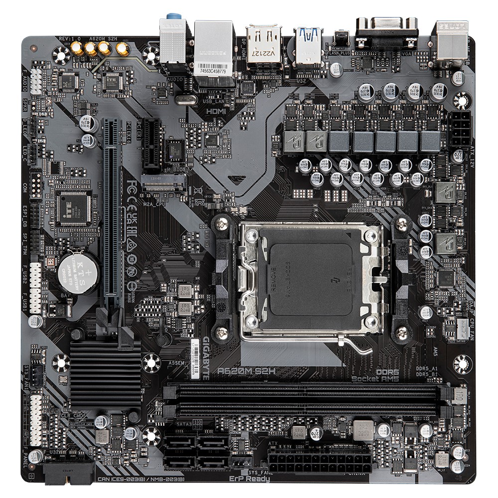 Gigabyte A620M S2H, AMD, Presa di corrente AM5, AMD Ryzen™ 5, AMD Ryzen 7 7th Gen, AMD Ryzen 9 7th Gen, Presa di corrente AM5, 96 GB, DDR5-SDRAM