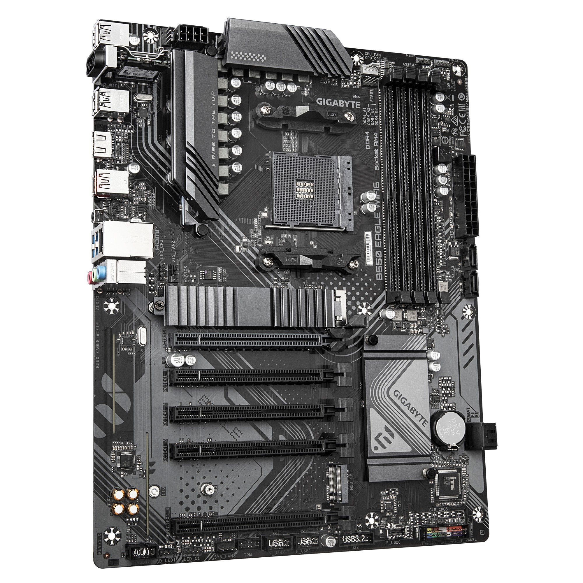 GIGABYTE B550 EAGLE WIFI6 Scheda madre - CPU AMD Ryzen serie 5000 G, VRM a 10+3+1 fasi, fino a 3200 MHz DDR4, 1xPCIe 4.0 + 1xPCIe 3.0 M.2, LAN 1GbE, WIFI 6, USB 3.2 Gen 2. Produttore processore: AMD, Presa per processore: Socket AM4, Processori compatibili: AMD Ryzen 3000 Series, AMD Ryzen 4000 Series, AMD Ryzen 5000 Series. Tipi di memoria supportati: DDR4-SDRAM, RAM massima supportata: 128 GB, tipo di slot di memoria: DIMM. Interfacce dell'unità di archiviazione supportate: M.2, PCI Express 4.0, SATA III, Tipi di unità di archiviazione supportate: HDD & SSD, Livelli RAID: 0, 1, 10. Risoluzione massima: 4096 x 2160 Pixel. Tipo di interfaccia Ethernet: Gigabit Ethernet, Controller LAN: Realtek RTL8111H, Wi-Fi standard: Wi-Fi 6 (802.11ax)