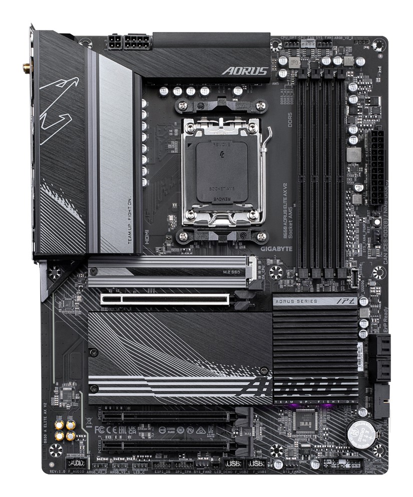 GIGABYTE B650 AORUS ELITE AX V2 Scheda madre - AMD Ryzen serie 9000, VRM a 12+2+2 fasi, fino a 8000 MHz DDR5 (OC), 1xPCIe 5.0 + 2xPCIe 4.0 M.2, LAN 2,5 GbE, WIFI 6E, USB 3.2 Gen 2. Produttore processore: AMD, Presa per processore: Socket AM5, Processori compatibili: AMD Ryzen 7000 Series, AMD Ryzen 8000 Series, AMD Ryzen 9000 Series. Tipi di memoria supportati: DDR5-SDRAM, RAM massima supportata: 256 GB, tipo di slot di memoria: DIMM. Interfacce dell'unità di archiviazione supportate: M.2, SATA III, Tipi di unità di archiviazione supportate: HDD & SSD, Livelli RAID: 0, 1, 10. Risoluzione massima: 4096 x 2160 Pixel. Tipo di interfaccia Ethernet: 2.5 Gigabit Ethernet, Controller LAN: Realtek RTL8125, Wi-Fi standard: Wi-Fi 6E (802.11ax)