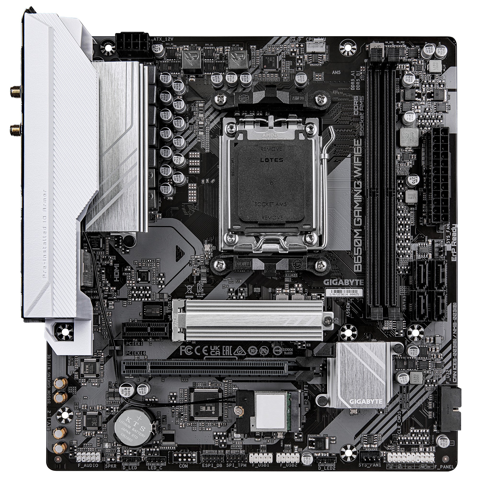 GIGABYTE B650M GAMING WIFI6E Scheda Madre - CPU AMD Ryzen Serie 9000, VRM 5+2+2 fasi, fino a 6400 MHz DDR5 (OC), 1xPCIe 4.0 M.2, LAN 2,5 GbE, WIFI 6E, USB 3.2 Gen 1. Produttore processore: AMD, Presa per processore: Socket AM5, Processori compatibili: AMD Ryzen 7000 Series, AMD Ryzen 8000 Series, AMD Ryzen 9000 Series. Tipi di memoria supportati: DDR5-SDRAM, RAM massima supportata: 256 GB, tipo di slot di memoria: DIMM. Interfacce dell'unità di archiviazione supportate: M.2, SATA III, Tipi di unità di archiviazione supportate: HDD & SSD, Livelli RAID: 0, 1, 10. Risoluzione massima: 4096 x 2160 Pixel. Tipo di interfaccia Ethernet: 2.5 Gigabit Ethernet, Wi-Fi standard: Wi-Fi 6E (802.11ax), Standard Wi-Fi: Wi-Fi 6E (802.11ax)