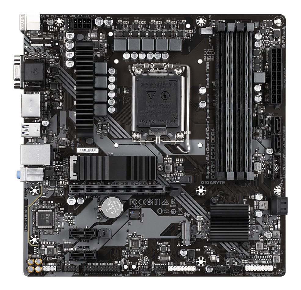 GIGABYTE B760M DS3H DDR4 Scheda Madre - Supporta CPU Intel Core di 14a Generazione, VRM Digitale 6+2+1 Fasi, fino a 5333MHz DDR4 (OC), 2xPCIe 4.0 M.2, LAN 2.5GbE, USB 3.2 Gen2, Intel, LGA 1700, Intel® Celeron®, Intel® Core™ i3, Intel® Core™ i5, Intel® Core™ i7, Intel® Core™ i9,..., LGA 1700, 128 GB, DDR4-SDRAM