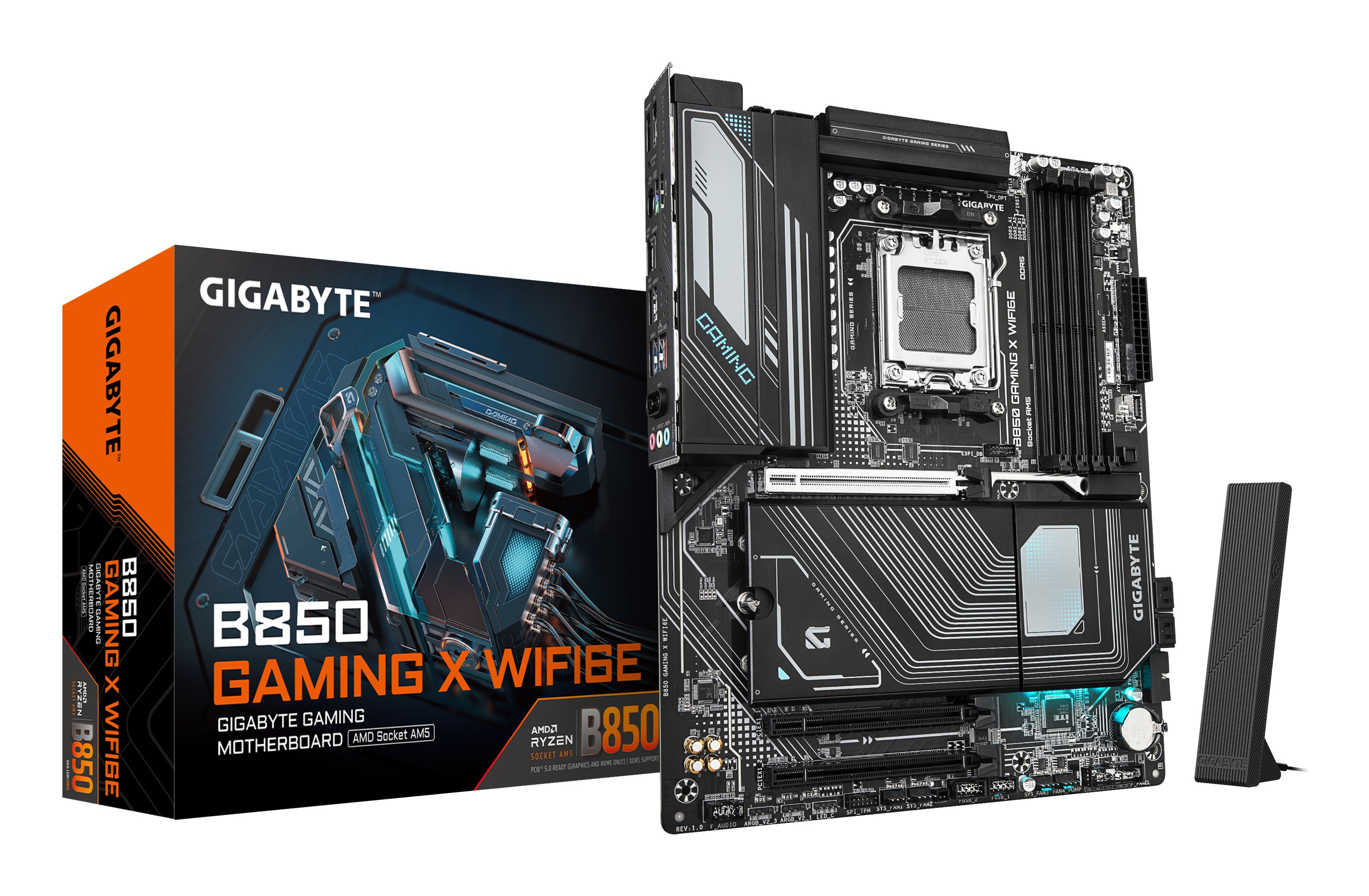 GIGABYTE B850 GAMING X WIFI6E Scheda Madre - CPU AMD Ryzen Serie 9000, VRM digitale 12+2+2 fasi, fino a 8200MHz DDR5 (OC), 1xPCIe 5.0 + 2xPCIe 4.0 M.2, LAN 2.5G, WIFI 6E, USB 3.2 Gen 2x2. Produttore processore: AMD, Presa per processore: Socket AM5, Processori compatibili: AMD Ryzen 7000 Series, AMD Ryzen 8000 Series, AMD Ryzen 9000 Series. Tipi di memoria supportati: DDR5-SDRAM, RAM massima supportata: 256 GB, tipo di slot di memoria: DIMM. Interfacce dell'unità di archiviazione supportate: M.2, SATA III, Tipi di unità di archiviazione supportate: HDD & SSD, Livelli RAID: 0, 1, 10. Risoluzione massima: 4096 x 2160 Pixel. Tipo di interfaccia Ethernet: 2.5 Gigabit Ethernet, Wi-Fi standard: Wi-Fi 6E (802.11ax), Standard Wi-Fi: 802.11a, 802.11b, 802.11g, Wi-Fi 4 (802.11n), Wi-Fi 5 (802.11ac), Wi-Fi 6 (802.11ax), Wi-Fi 6E...