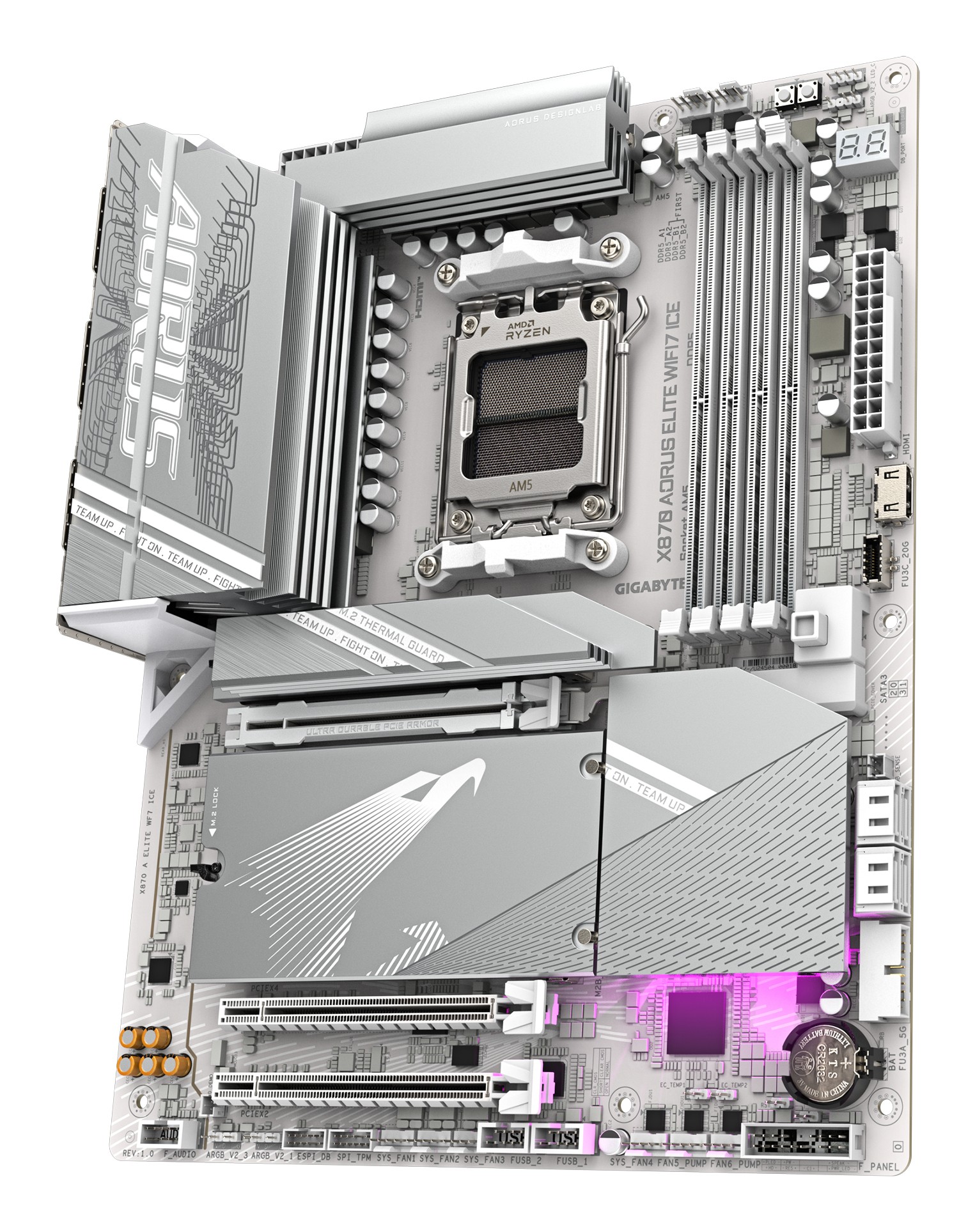GIGABYTE X870 AORUS ELITE WIFI7 ICE Scheda Madre - Supporta CPU AMD Ryzen 9000, 16+2+2 fasi VRM digitale, fino a 8200MHz DDR5 (OC), 3xPCIe 5.0 + 1xPCIe 4.0, Wi-Fi 7, LAN 2.5GbE, USB 4. Produttore processore: AMD, Presa per processore: Socket AM5, Processori compatibili: AMD Ryzen 7000 Series, AMD Ryzen 8000 Series, AMD Ryzen 9000 Series. Tipi di memoria supportati: DDR5-SDRAM, RAM massima supportata: 256 GB, tipo di slot di memoria: DIMM. Interfacce dell'unità di archiviazione supportate: M.2, Tipi di unità di archiviazione supportate: HDD & SSD, Livelli RAID: 0, 1, 10. Risoluzione massima: 4096 x 2160 Pixel, Modello scheda grafica integrata: AMD Radeon Graphics. Tipo di interfaccia Ethernet: 2.5 Gigabit Ethernet, Controller LAN: Realtek RTL8125, Wi-Fi standard: Wi-Fi 7 (802.11be)