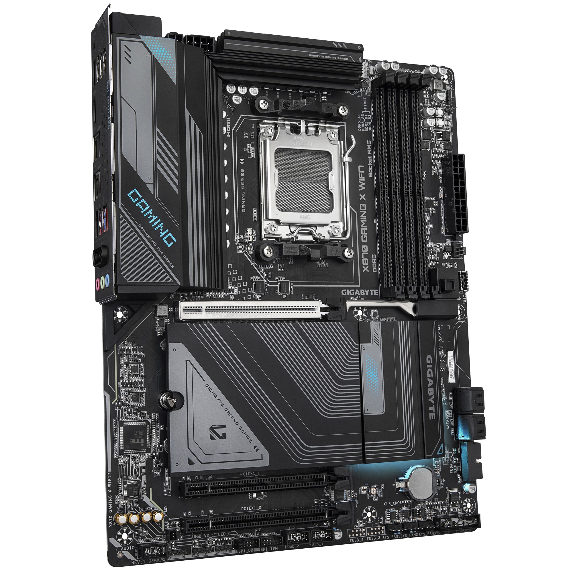 GIGABYTE X870 GAMING X WIFI7 Scheda Madre - Supporta CPU AMD Ryzen 9000, 16+2+2 fasi VRM, fino a 8000MHz DDR5 (OC), 1xPCIe 5.0 + 2xPCIe 4.0, Wi-Fi 7, LAN 2.5GbE, USB 4. Produttore processore: AMD, Presa per processore: Socket AM5, Processori compatibili: AMD Ryzen 7000 Series, AMD Ryzen 8000 Series, AMD Ryzen 9000 Series. Tipi di memoria supportati: DDR5-SDRAM, RAM massima supportata: 256 GB, tipo di slot di memoria: DIMM. Interfacce dell'unità di archiviazione supportate: M.2, SATA III, Tipi di unità di archiviazione supportate: HDD & SSD, Livelli RAID: 0, 1, 10. Tipo di interfaccia Ethernet: 2.5 Gigabit Ethernet, Controller LAN: Realtek RTL8125, Wi-Fi standard: Wi-Fi 7 (802.11be). Componente per: PC, Fattore di forma scheda madre: ATX, Famiglia di chipset per scheda madre: AMD