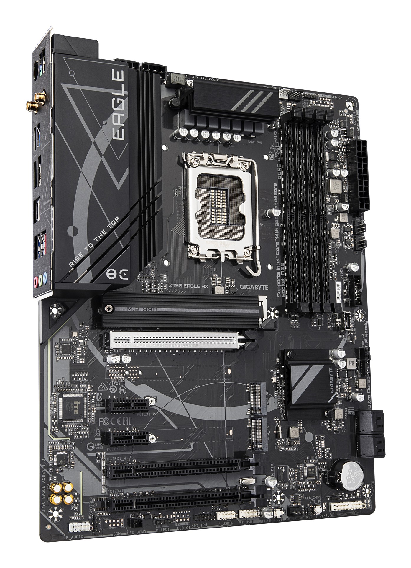 GIGABYTE Z790 EAGLE AX Scheda madre - Supporta CPU Intel Core di 14a generazione, VRM digitale a 12+1+1 fasi, fino a 7600MHz DDR5 (OC), 3xPCIe 4.0 M.2, Wi-Fi 6E, LAN 2.5GbE, USB 3.2 Gen 2. Produttore processore: Intel, Presa per processore: LGA 1700, Processori compatibili: Intel® Celeron®, Intel® Core™ i3, Intel® Core™ i5, Intel® Core™ i7, Intel® Core™ i9,.... Tipi di memoria supportati: DDR5-SDRAM, RAM massima supportata: 192 GB, tipo di slot di memoria: DIMM. Interfacce dell'unità di archiviazione supportate: M.2, SATA III, Tipi di unità di archiviazione supportate: HDD & SSD, Livelli RAID: 0, 1, 5, 10. Risoluzione massima: 4096 x 2304 Pixel. Connettore USB: USB tipo A, USB tipo-C