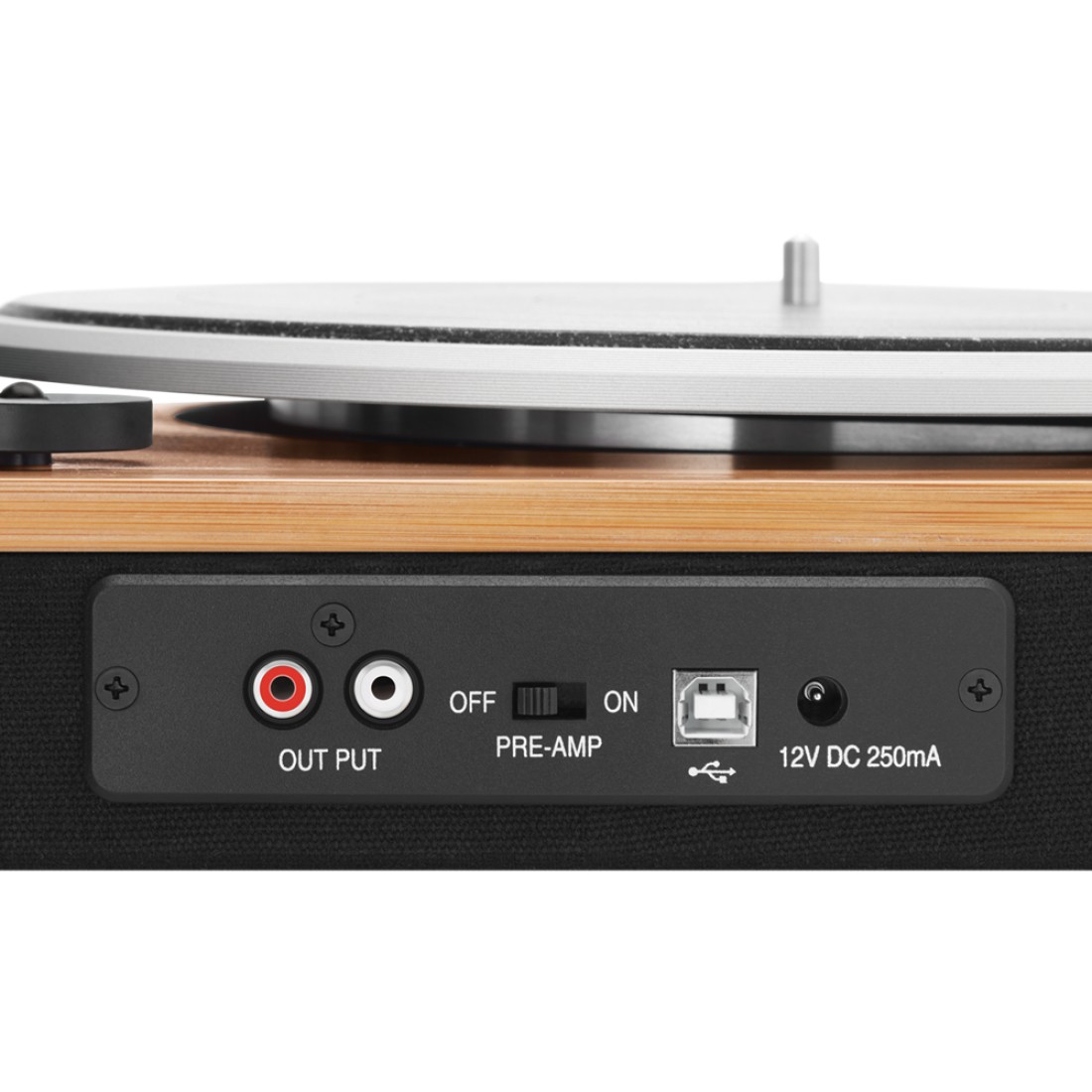Un tuffo nel passato con una nuova veste tecnologica. Il nuovo giradischi Stir It Up Wireless si collega in un attimo a qualsiasi altoparlante Bluetooth. Il suono nitido rivela la vera profondità della tua musica preferita. Il design ergonomico del Giradischi Stir It Up è caratterizzato da materiali riciclati e naturali ed è dotato di un preamplificatore che è compatibile con tutti i dispositivi Marley. Questo giradischi dalle linee classiche porta il tuo vinile in vita con la profondità del suono che si merita. Il Giradischi Wireless Stir It Up ha un design elegante grazie all'utilizzo di bamboo, silicone REGRIND™ , tessuto REWIND™ . Goditi un sistema audio classico che si connette tramite wireless a qualsiasi speaker Bluetooth®, è dotato di un pre-amplificatore compatibile con gli speaker Marley o in-homereceiver. Stir It Up Wireless include una porta USB per registrazioni al PC, un'uscita RCA, e un jacl per auricolari da 3.5mm. Realizzato sistenibilmente Il Giradischi Wireless Stir It Up Wireless è realizzato in bamboo, tessuto REWIND™ e silicone REGRIND™. Il tessuto Marley REWIND™ è ottenuto con materiali riciclati per creare un prodotto duraturo e di alta qualità. È costruito con una miscela distintiva di cotone organico recuperato 30%, 30% di canapa recuperata e 40% PET riciclato. 33/45 RPM Dotato di un interruttore 33/45 RPM in modo da poter scegliere l'impostazione per il vinile che si desidera riprodurre. Crea un suono classico che riveli la vera profondità della tua musica preferita. Bluetooth Sii sempre all'avanguardia con l'ultima funzionalità Bluetooth®. Un semplice pulsante di accoppiamento e i controlli del volume di bordo rendono più fluida la connessione e prestazioni migliori. Azionamento a cinghia Dimostrando stabilità rotazionale e suono di qualità con l'auto-pitch e la funzione di avvio automatico. Registrazione da USB a PC Il giradischi Stir It Up Wireless dispone di una funzione di registrazione da USB a PC o Mac, in modo da poter registrare e digitalizzare la tua musica in vinile. È possibile collegare il giradischi al computer tramite la connessione USB sul lettore per salvare la musica come file digitale. Puoi trasferire quel file sul tuo laptop, telefono o qualsiasi dispositivo multimediale portatile in modo da poter ascoltare musica dalla tua collezione di vinili in viaggio! REWIND™ Coperchio di tessuto anti-polvere Una volta che hai finito di ascoltare la tua collezione di vinili, usa la copertura per la polvere REWIND™ Fabric inclusa per evitare che il piatto e lo stilo si impolverino.
