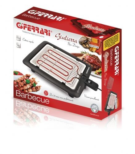 Portatile e molto resistente, Giulietta ha un’ottima superficie di cottura ideale per tutta la famiglia. Equipaggiata di griglia in acciaio inox e vassoio porcellanato, Giulietta è dotata di una cornice in plastica termo-isolante per trasportarla comodamente in tavola ed è completamente smontabile per una facile pulizia. Il telaio è inoltre dotato di appoggio delle resistenze con altezze predeterminate per la cottura di carne e pesce.