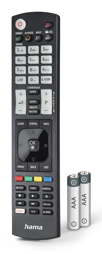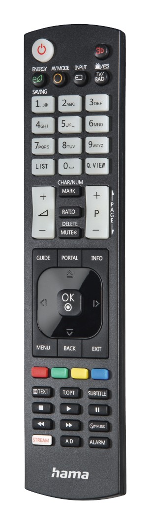 Hama 00221061. Compatibilità marca: LG, Utilizzo appropriato telecomando: TV, Interfaccia: IR Wireless. Numero di dispositivi supportati: 1, Raggio di funzionamento massimo: 10 m. Tipo di ingresso: Pulsanti, Numero di tasti: 52