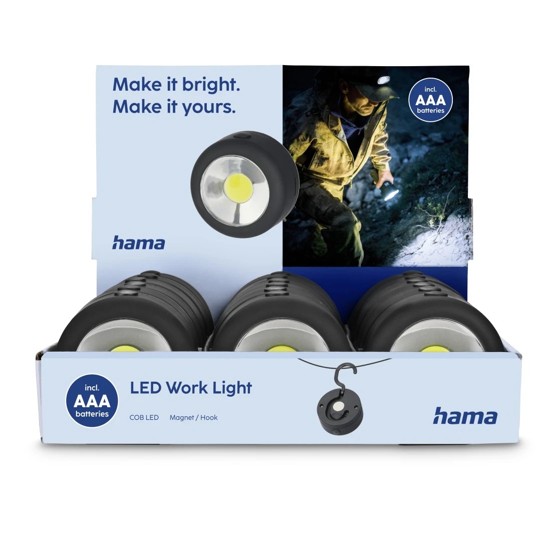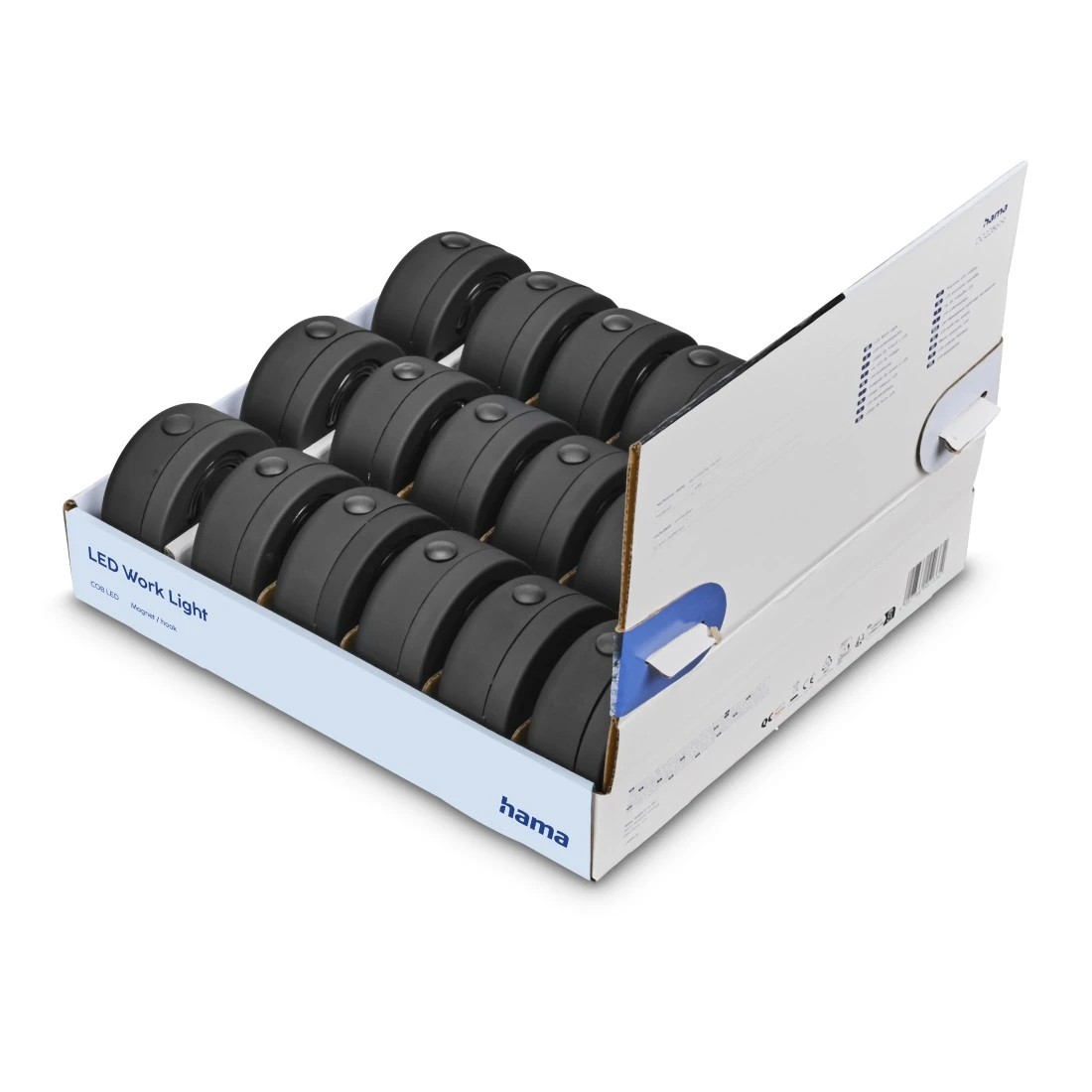 Hama W140. Tipo di lampada: Torcia elettrica con supporto magnetico, Colore del prodotto: Nero, Materiale della scocca: Plastica. Tipo di lampada: COB LED, Quantità lampade: 1 lampada(e), Potenza della lampada: 1,8 W. Tipo batteria: Mini Stilo AAA. Larghezza: 70 mm, Profondità: 35 mm, Altezza: 70 mm. Quantità per pacco: 18 pz