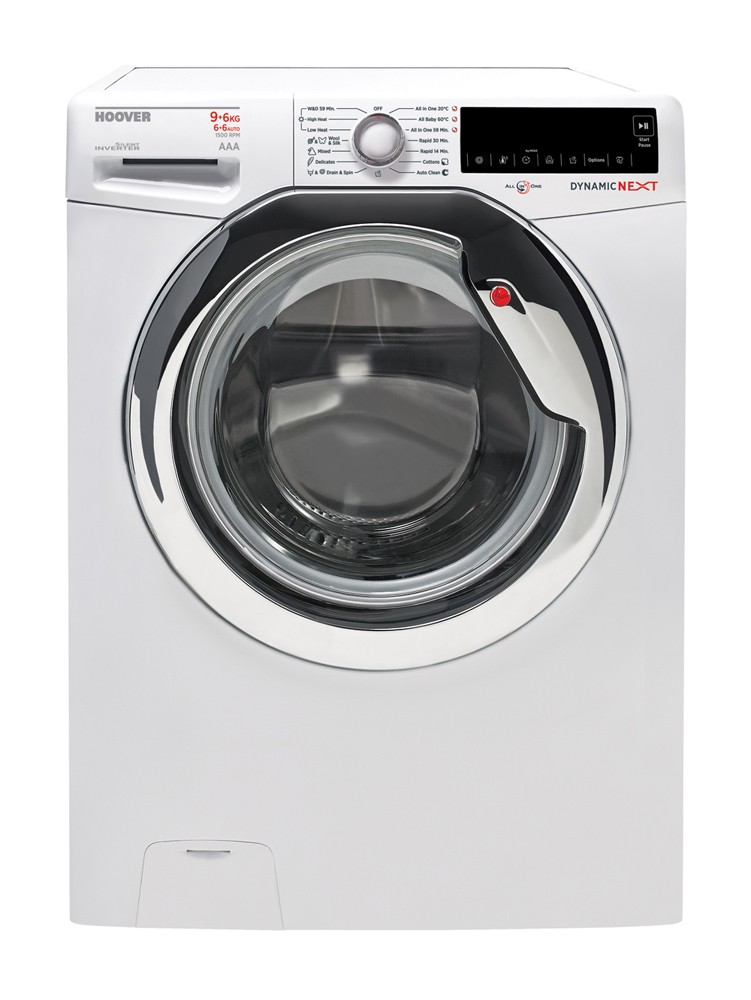 Hoover WDXA 596AH-S. Tipo caricamento: Caricamento frontale, Installazione: Libera installazione, Colore del prodotto: Bianco. Capacità di asciugatura: 6 kg, Velocità di centrifuga massima: 1500 RPM, Classe efficacia di lavaggio: A. Classe efficienza energetica: A, Consumo di energia per lavaggio: 6,12 kWh, Consumo di acqua (lavaggio): 130 L. Larghezza: 60 cm, Profondità: 60 cm, Altezza: 85 cm