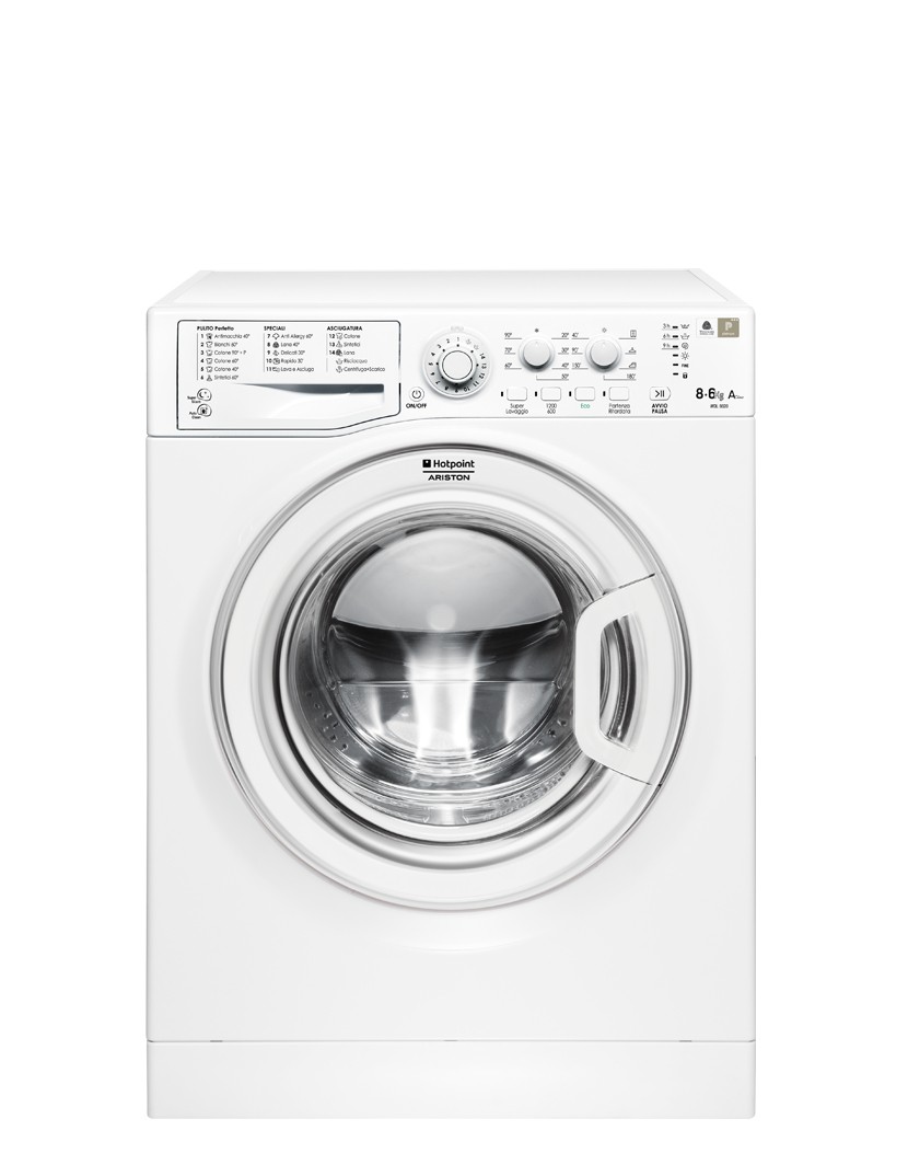 Il simbolo Ecotech contraddistingue gli elettrodomestici che rispondono ai più alti standard di efficienza energetica. Le lavasciuga Ecotech sono garanzia di alti standard di efficienza, minori consumi e performance eccellenti. Hotpoint-Ariston WDL 8620 IT. Tipo caricamento: Frontale, Installazione: Libera installazione, Colore del prodotto: Bianco. Capacità di asciugatura: 6 kg, Velocità di centrifuga massima: 1200 RPM, Classe efficacia di lavaggio: A. Angolo di apertura della porta: 180°. Classe efficienza energetica: A, Consumo di energia per lavaggio: 1,2 kWh, Consumo di acqua (lavaggio): 69L. Larghezza: 59,5 cm, Profondità: 60,5 cm, Altezza: 85 cm