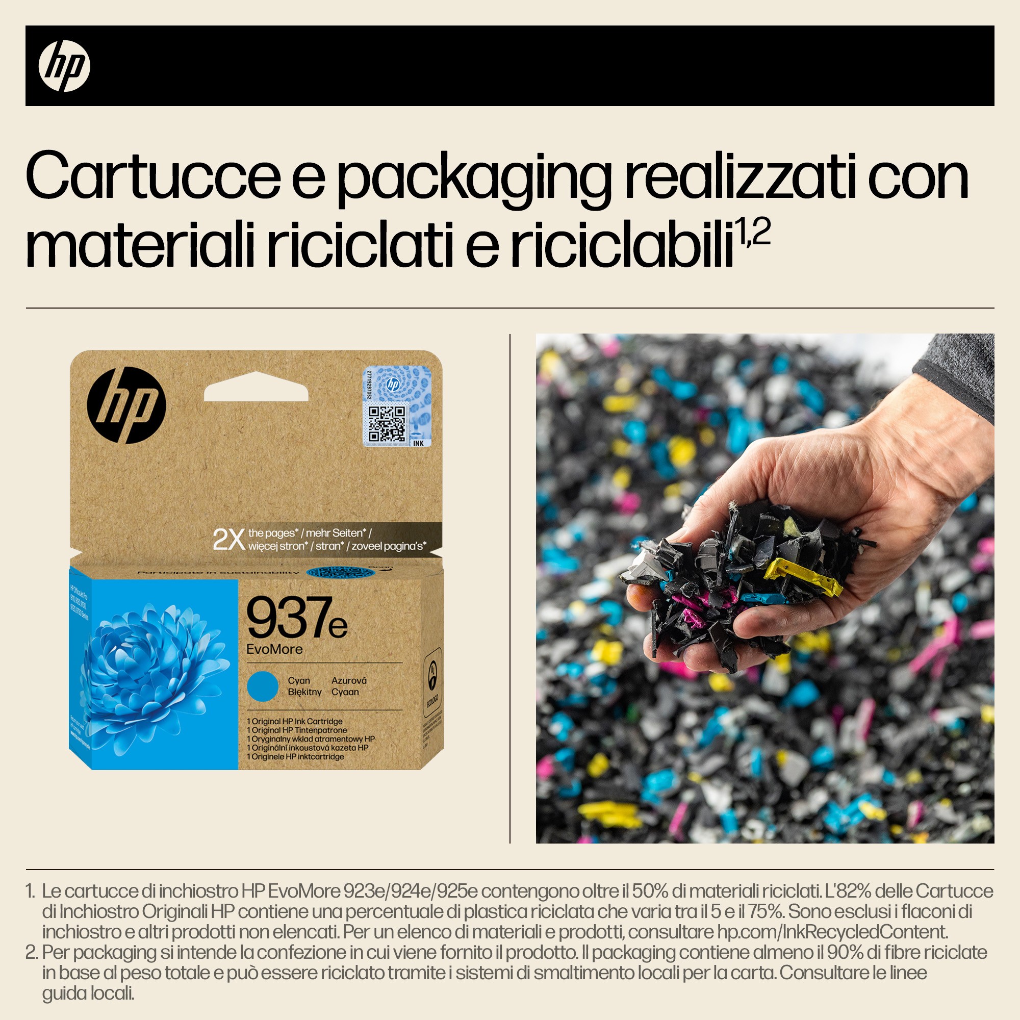 HP Cartuccia di inchiostro ciano originale 937e EvoMore. Tipo di cartuccia: Resa standard, Tipo di fornitura: Confezione singola, Resa in pagine dell'inchiostro a colori: 1650 pagine, Quantità per pacco: 1 pz
