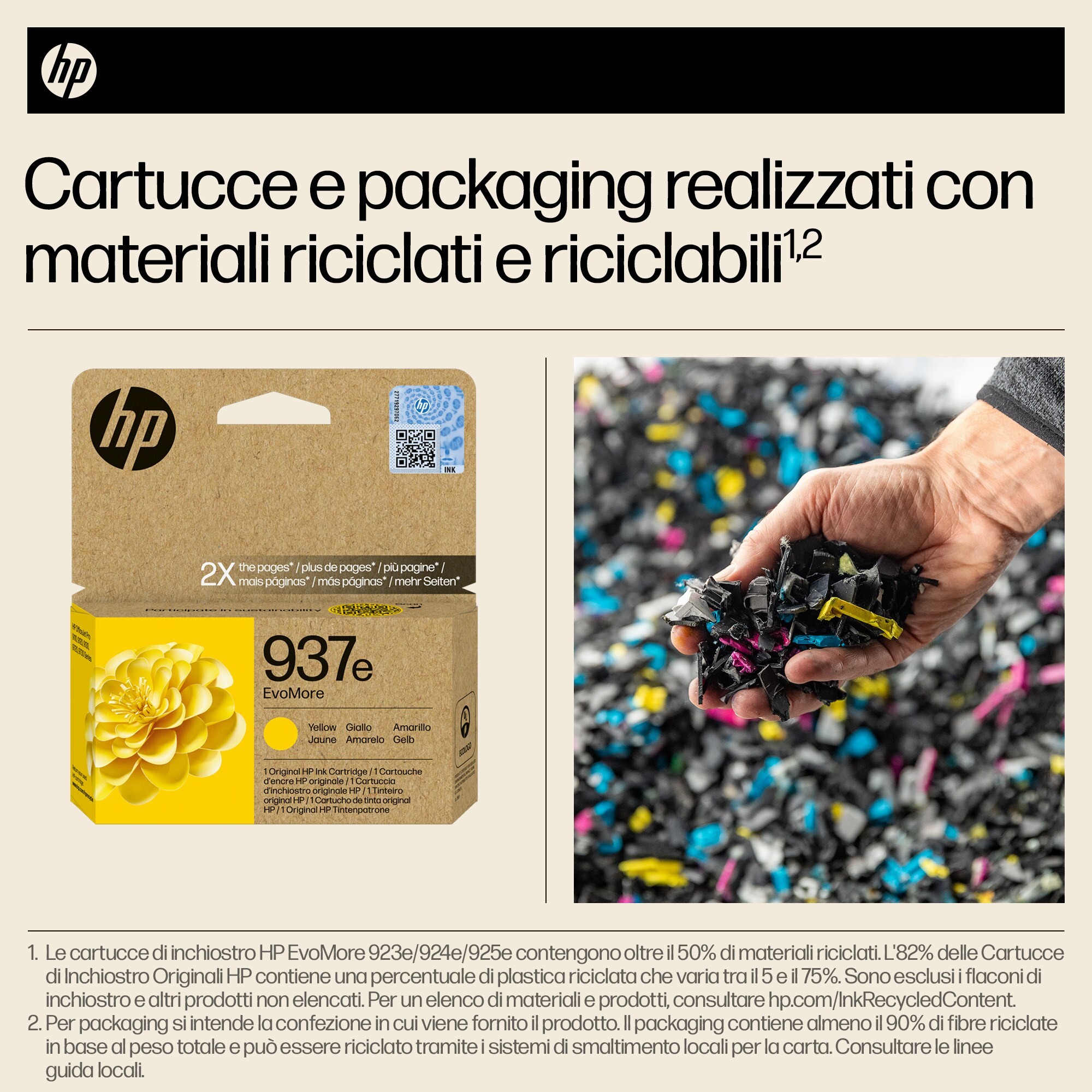 HP Cartuccia di inchiostro giallo originale 937e EvoMore, Resa standard, Giallo, 1 pz, 1650 pagine, Confezione singola