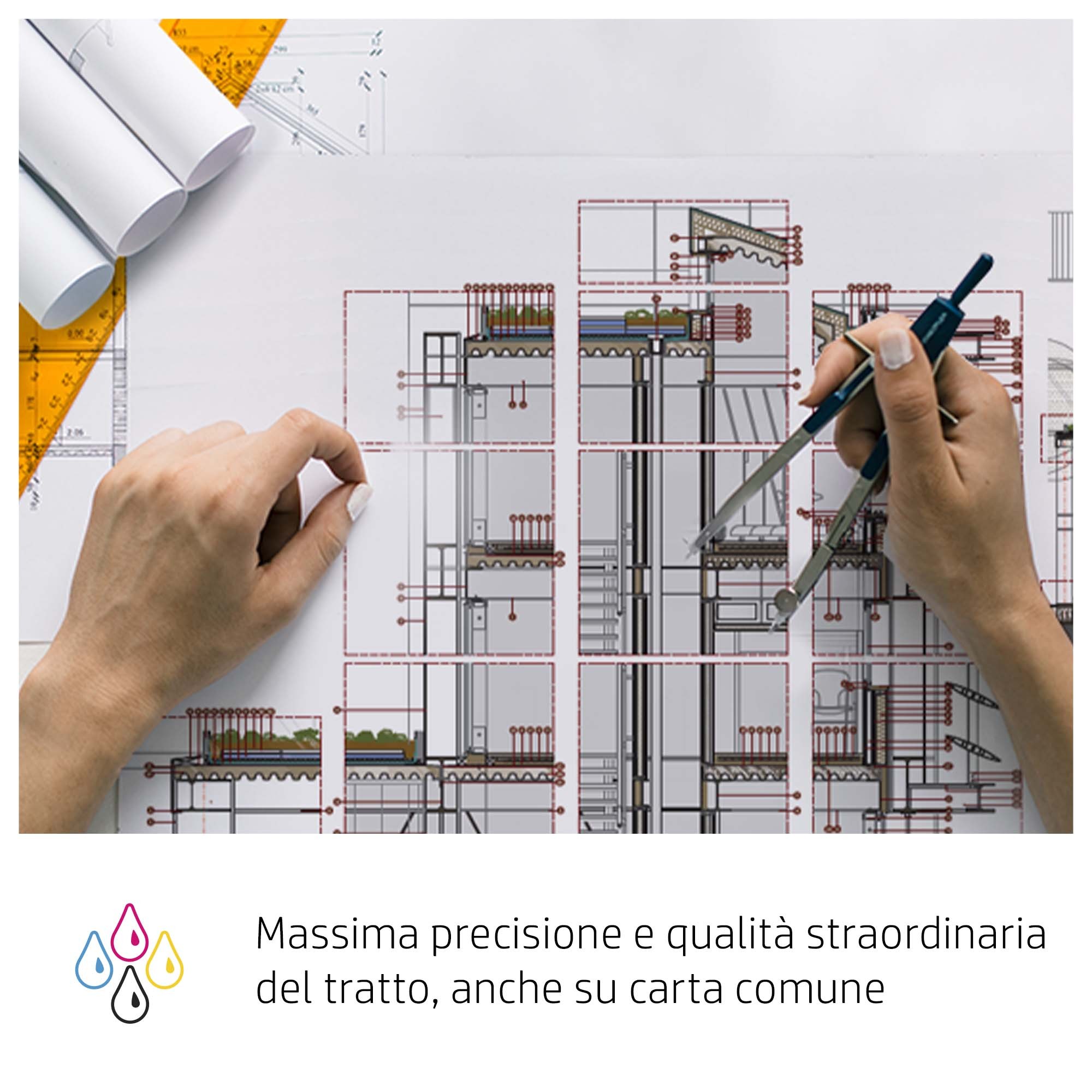 Colori brillanti e immagini di qualità straordinaria su carta comune, ideale per la stampa di documenti tecnici. Lavorate con la massima efficienza e sfruttate i vantaggi di una stampa ad asciugatura rapida. Gli inchiostri originali HP aumentano la durata della testina di stampa riducendo il costo di proprietà.