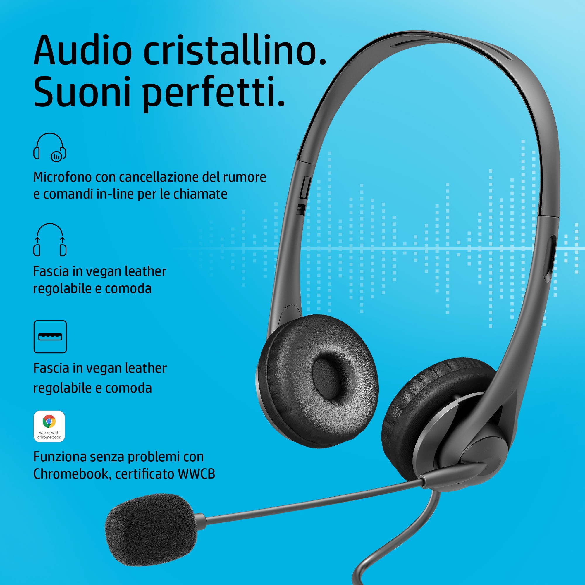 HP Cuffie stereo USB G2, Cablato, Ufficio, 90 g, Auricolare, Nero