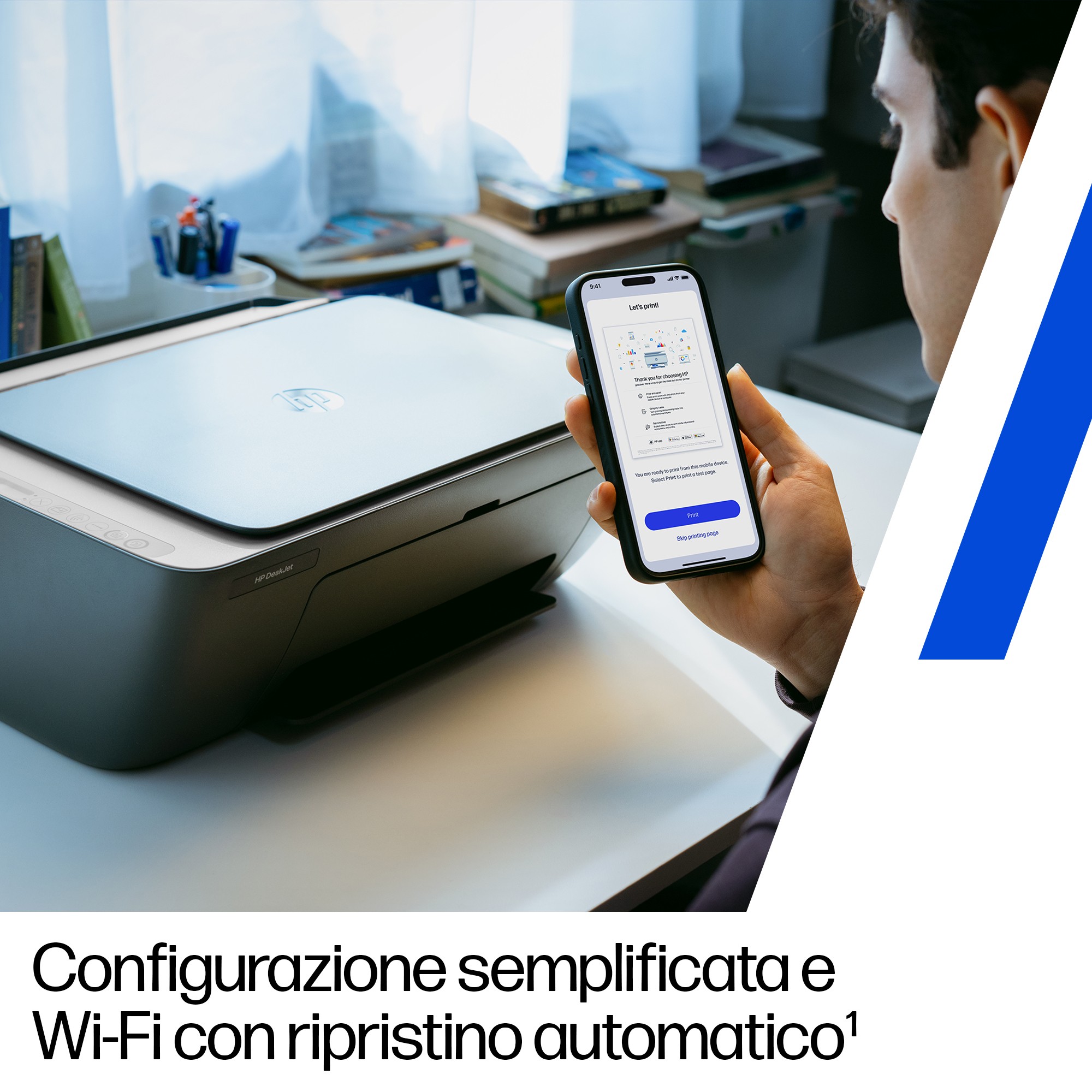 Ora stampare a casa è facilissimo Configurazione in un attimo grazie all'app HP, semplice e intuitiva. Stampa qualsiasi tipo di documento: dalle etichette di reso a coloratissimi compiti per la scuola. Semplifica le attività di stampa. Stimola la creatività e l'apprendimento.[3]. Idonea per HP Instant ink