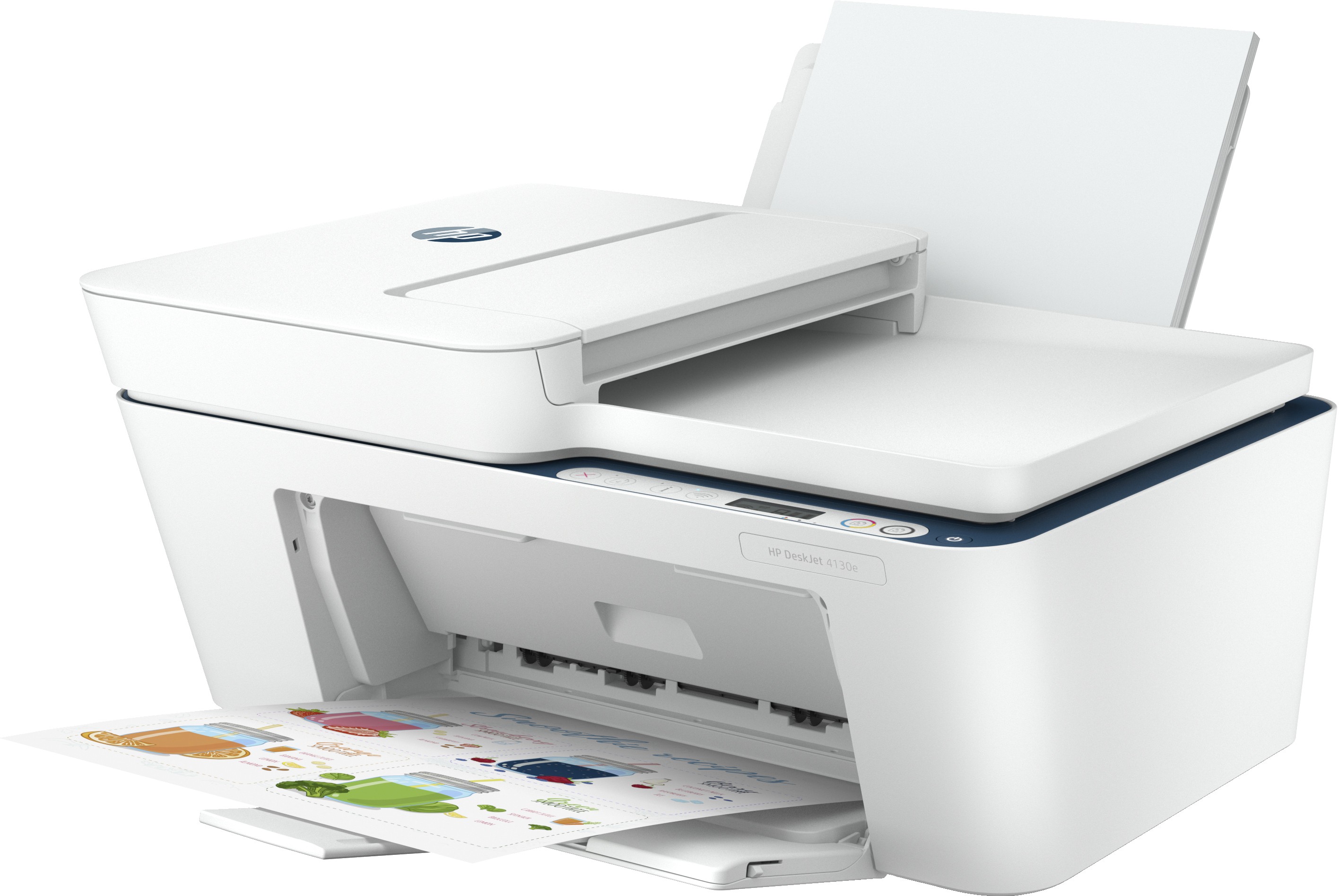 HP DeskJet Stampante multifunzione 4130e, Colore, Stampante per Casa, Stampa, copia, scansione, invio fax da mobile, +, Idoneo per Instant Ink, scansione verso PDF. Tecnologia di stampa: Getto termico d'inchiostro, Stampa: Stampa a colori, Risoluzione massima: 4800 x 1200 DPI. Copia: Copia a colori, Risoluzione di copia massima: 300 x 300 DPI. Scansione: Scansione a colori, Risoluzione di scansione ottica: 1200 x 1200 DPI. Fax: Fax a colori. Massimo formato carta serie ISO A: A4. Wi-Fi. Colore del prodotto: Blu, Bianco