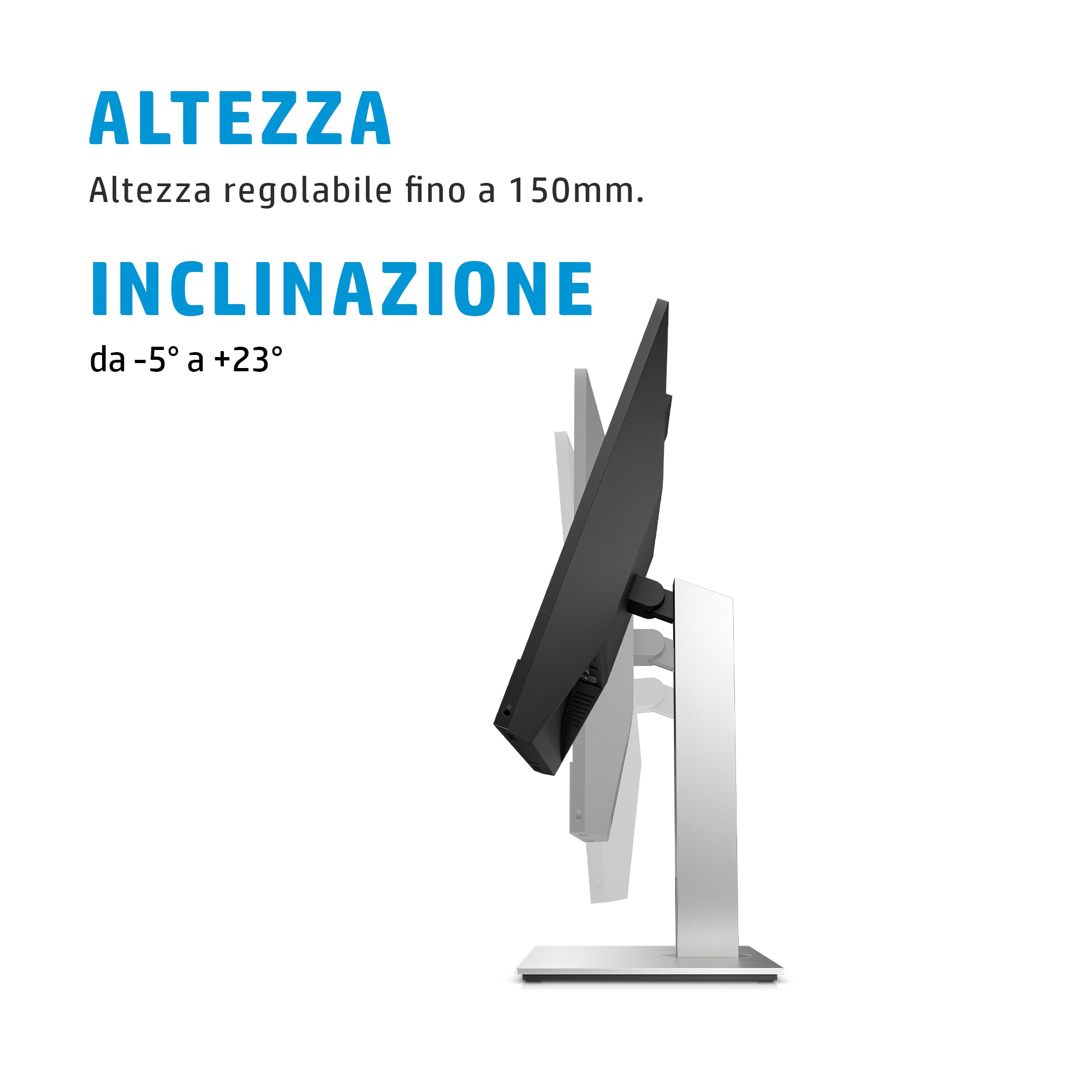 HP E24mv G4 FHD Conferencing Monitor. Dimensioni diagonale schermo: 60,5 cm (23.8"), Risoluzione del display: 1920 x 1080 Pixel, Tipologia HD: Full HD, Tecnologia display: LCD, Superficie display: Opaco, Tempo di risposta: 5 ms, Rapporto d'aspetto nativo: 16:9, Angolo di visualizzazione (orizzontale): 178°, Angolo di visualizzazione (verticale): 178°. Altoparlanti incorporati. Hub USB integrato, Versione dell'hub USB: 3.2 Gen 1 (3.1 Gen 1). Montaggio standard VESA, Regolazione altezza. Colore del prodotto: Nero, Argento