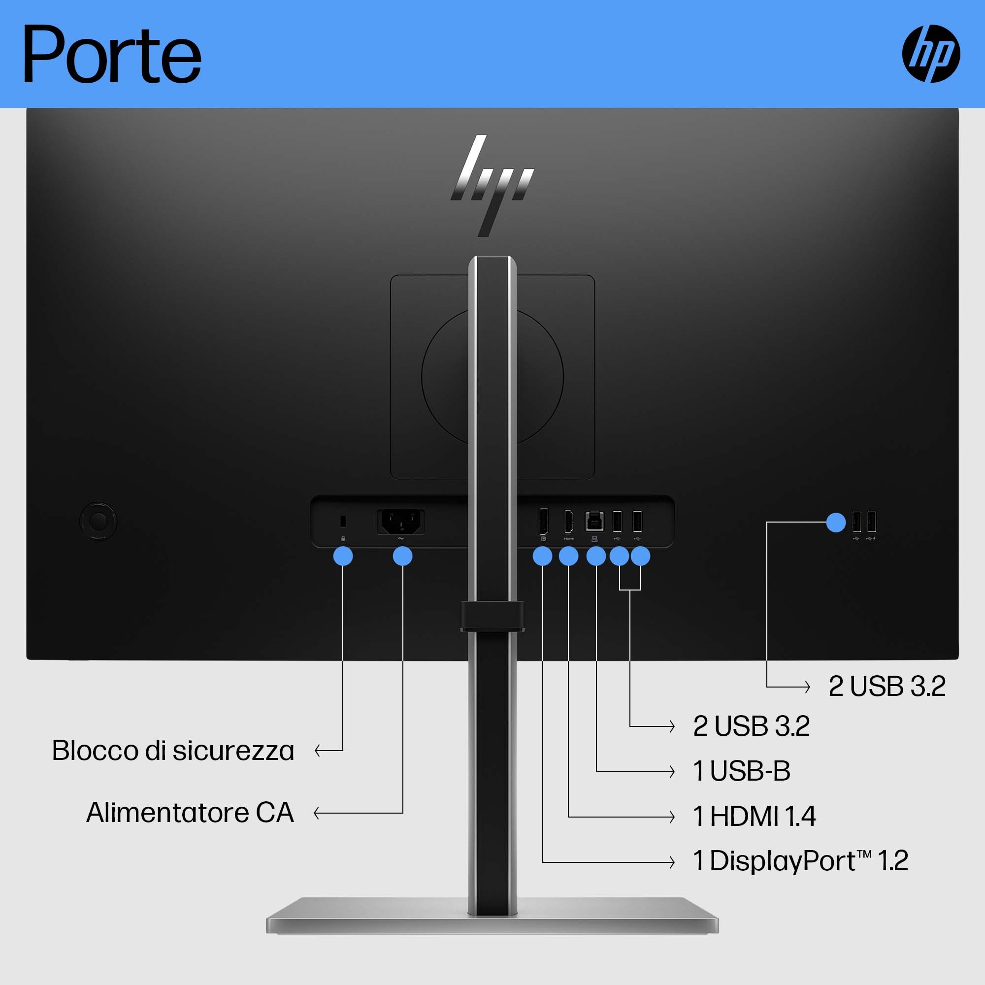 Realizzato appositamente per offrire immagini nitide, opzioni personalizzate per la massima comodità e autentica flessibilità, il monitor HP E27 G5 FHD ridefinisce il concetto di comfort, in modo che possiate lavorare al meglio senza ostacoli. Un display dallo stile elegante, progettato pensando all'ambiente, perfetto sia in ufficio che in casa.