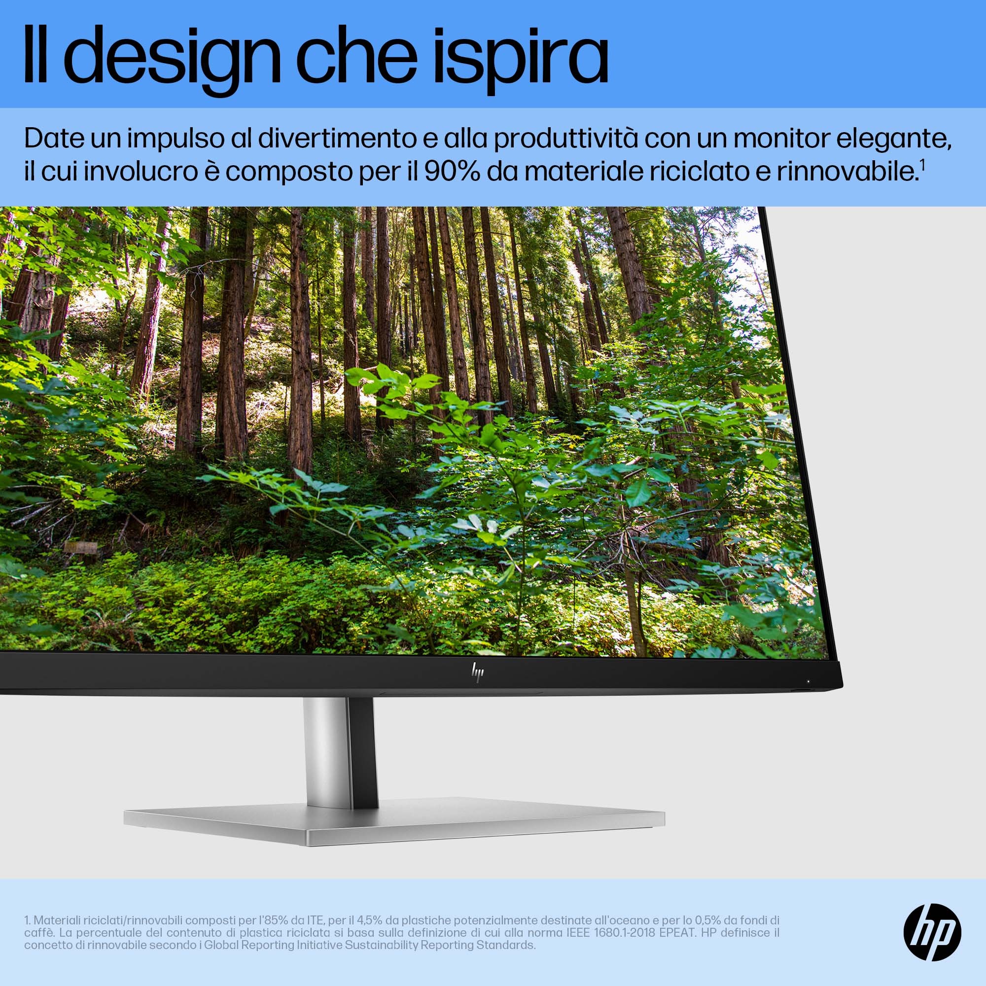 Noi di HP non esitiamo quando si tratta di proteggere il futuro comune. Ecco perché la progettazione di questo monitor prevede l'utilizzo del 25% di materiali riciclati per la sua realizzazione. [10]