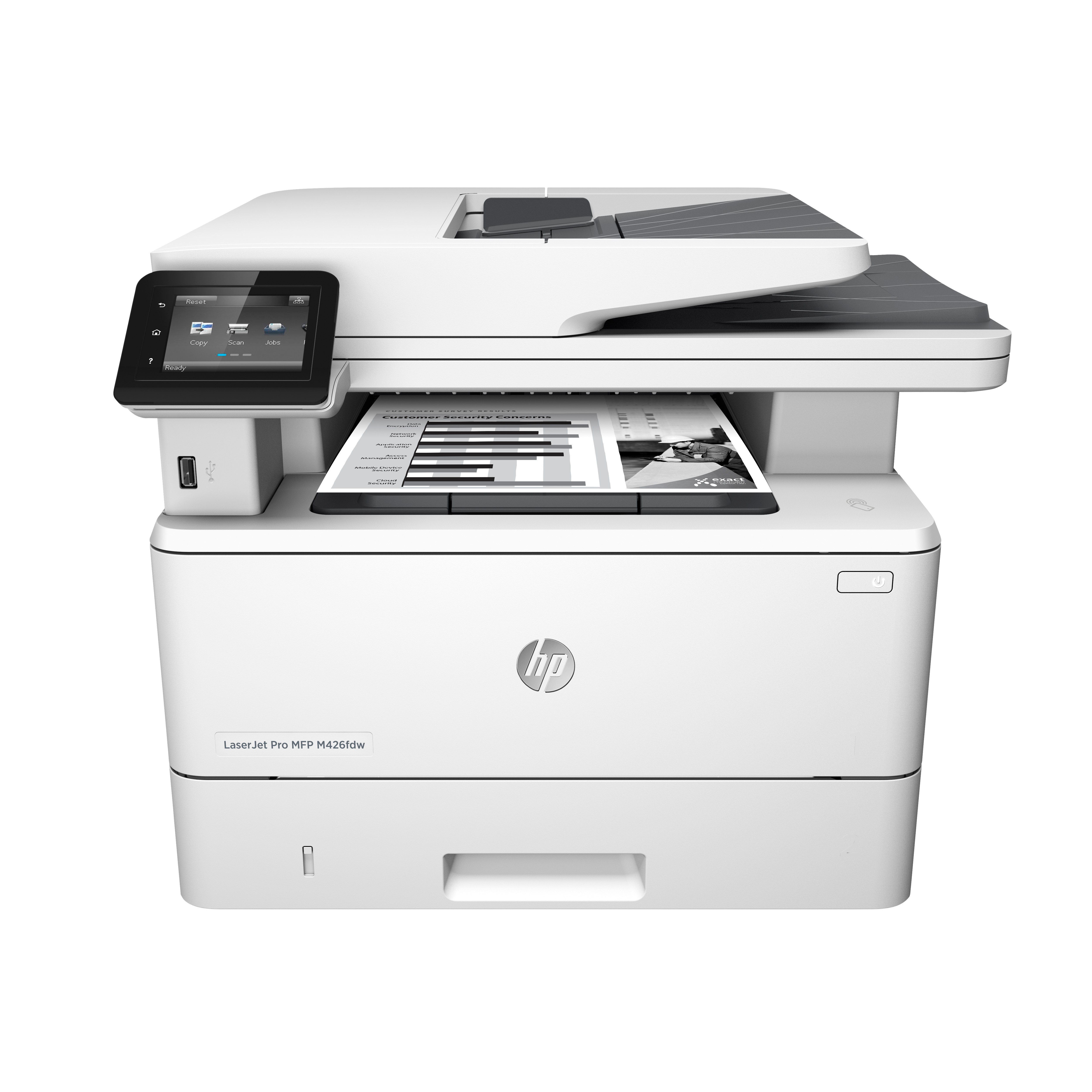 HP LaserJet Pro M426fdw. Tecnologia di stampa: Laser, Stampa: Mono stampa. Risoluzione massima: 1200 x 1200 DPI. Copia: Mono copia. Risoluzione di copia massima: 600 x 600 DPI. Scansione: Scansione a colori. Risoluzione di scansione ottica: 1200 x 1200 DPI. Fax: Mono fax, Funzione duplex: Stampa. Massimo formato carta serie ISO A: A4. Capacità di input standard: 250 fogli, Capacità di output standard: 150 fogli. Wi-Fi. Colore del prodotto: Grigio