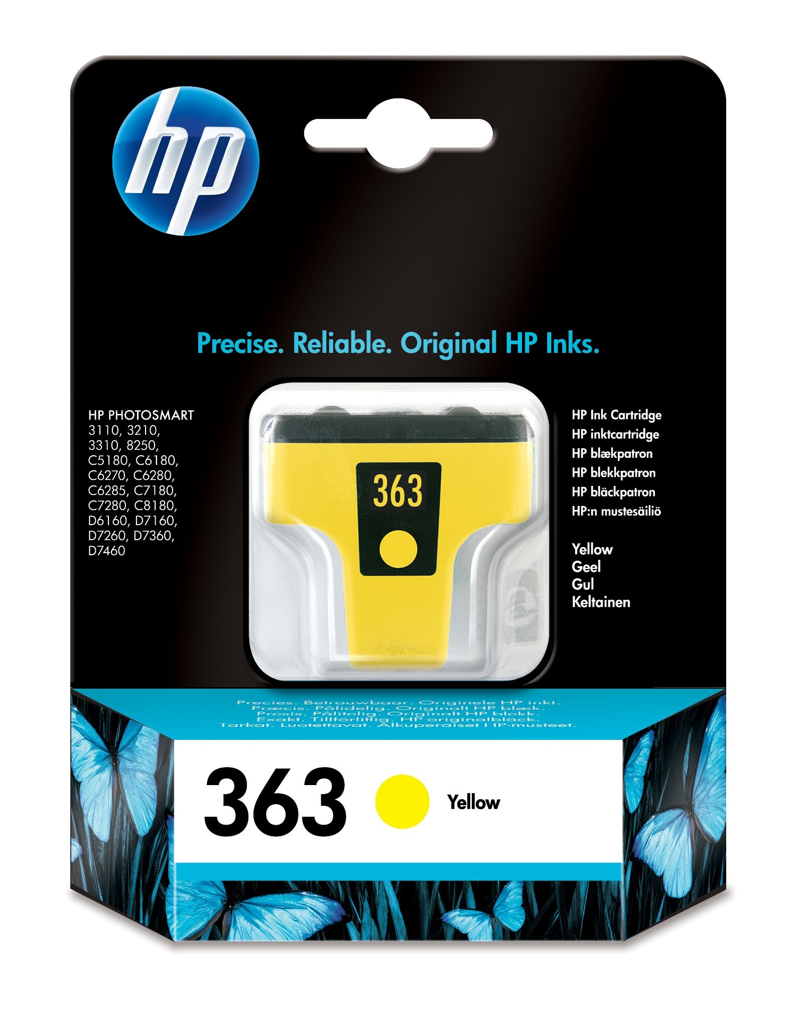 HP 363, Originale, Inchiostro a base di pigmento, Giallo, HP, HP Photosmart 3110, 3210, 3310, C5180, C6180, C6280, C7180, C7280, C8180, D6160, D7160, D7260,..., 1 pezzo(i)