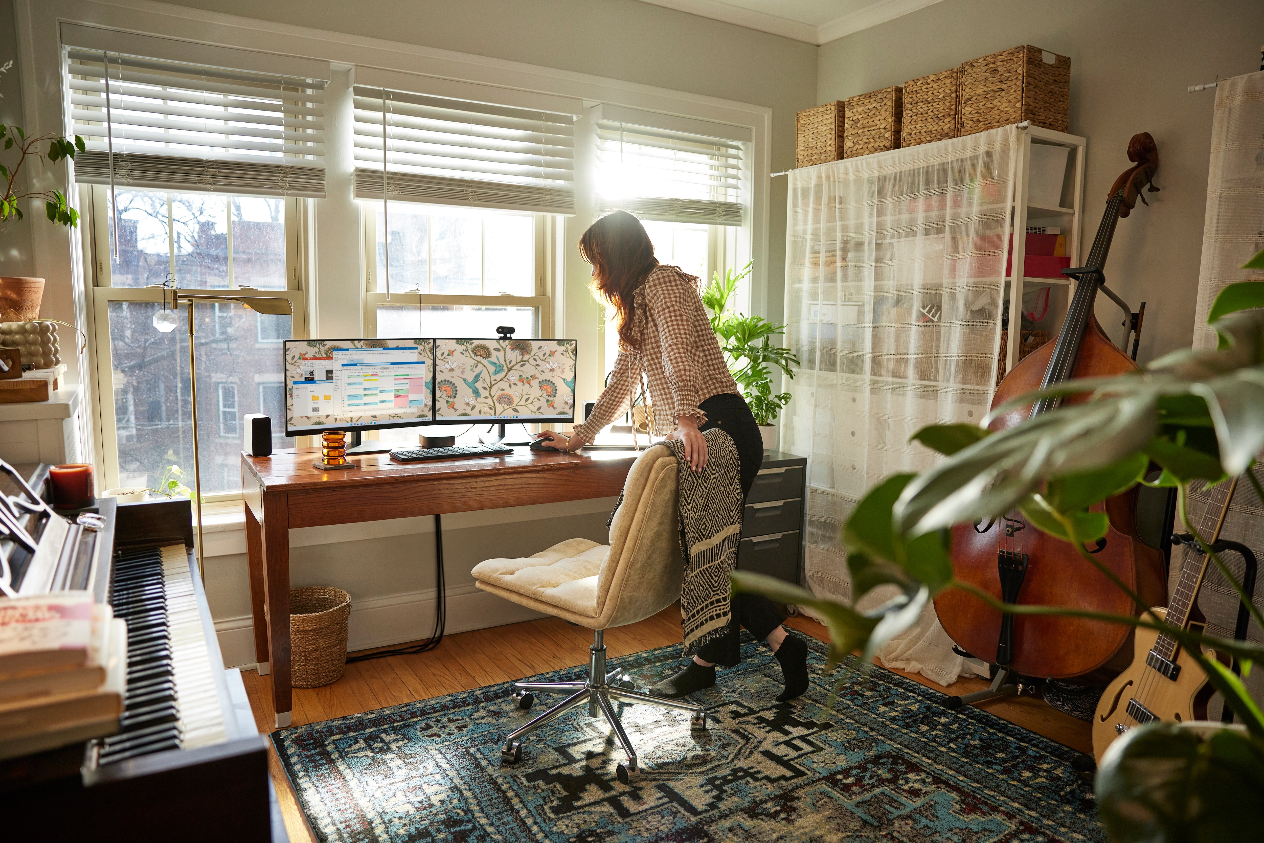 Libera la mente, e la scrivania, con un monitor espressamente concepito per chi ha limiti di spazio. Più spazio di visualizzazione sullo schermo grazie all'elegante cornice micro-edge su 3 lati, alla gestione ordinata dei cavi e alla base del supporto più piccola del 27%[2] con inclinazione e altezza regolabili per un'esperienza di visione perfetta.