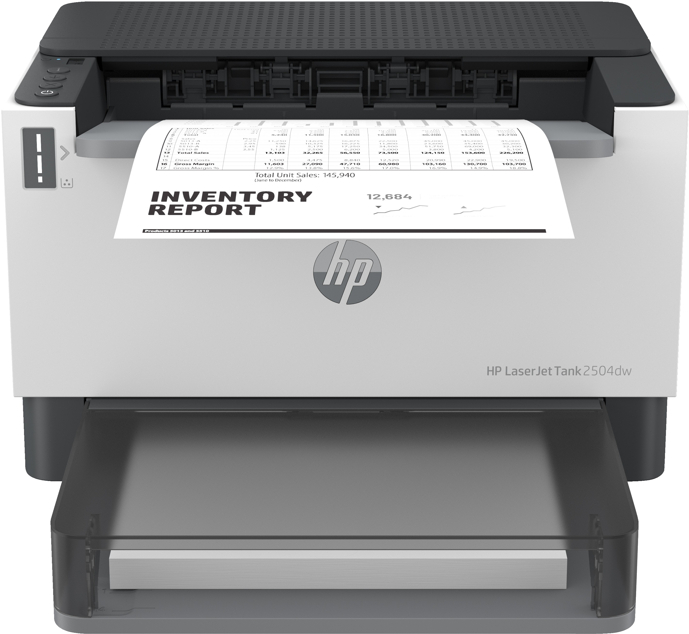 Produttività ininterrotta. E una ricarica rapida. Scopri prestazioni di livello business e inizia a risparmiare grazie alla stampante a serbatoio HP LaserJet Tank 2504dw, con fino a 5.000 pagine incluse e fronte/retro automatico di serie[2]