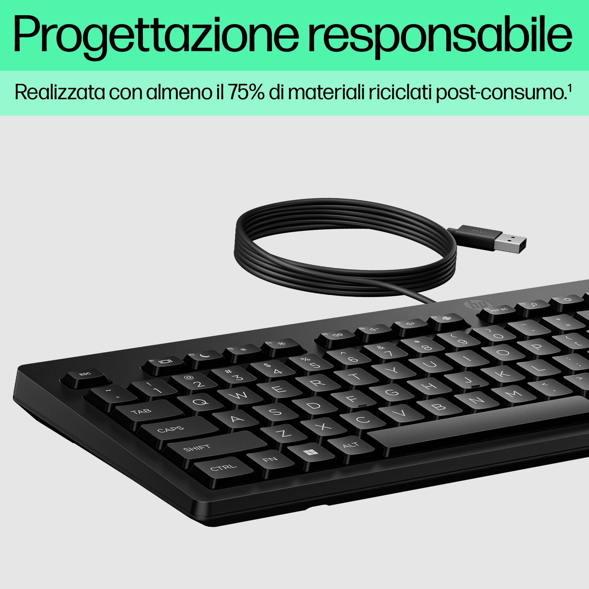 HP Tastiera cablata 125 G2 USB, Full-size (100%), Cablato, USB, Nero