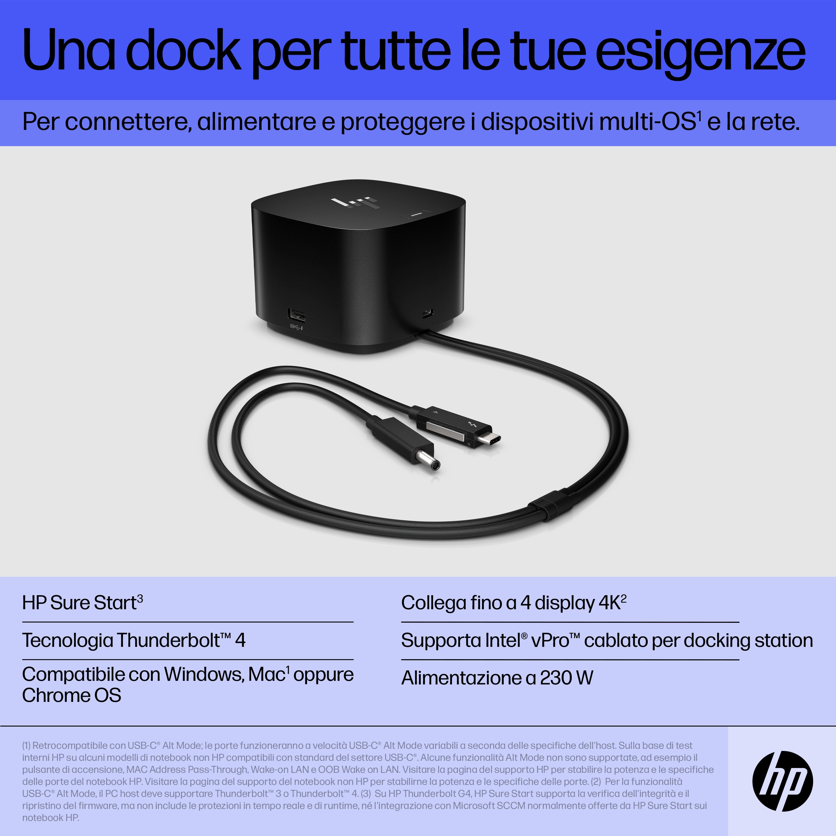 Potenziate la sicurezza, la produttività e la connettività con questo dock Thunderbolt™ 4. Protegge la tua rete e i tuoi dispositivi dal momento dell'accesso, supporta la compatibilità multi-OS[1] e può supportare fino a quattro schermi 4K[2]. Ideale per ITDM e lavoratori ibridi, questo dock semplifica anche la gestione dei dispositivi per la casa o l'ufficio.