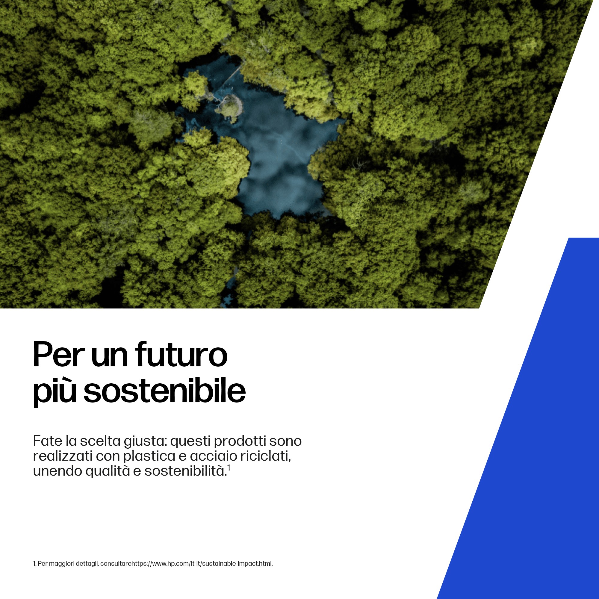 HP presta la massima attenzione all'impatto generato dai suoi prodotti sulle persone, la società e il pianeta. Ecco perché questo dispositivo è certificato EPEAT® Gold[5] con Climate + e l'imballaggio esterno è al 100% di origine sostenibile.[6]
