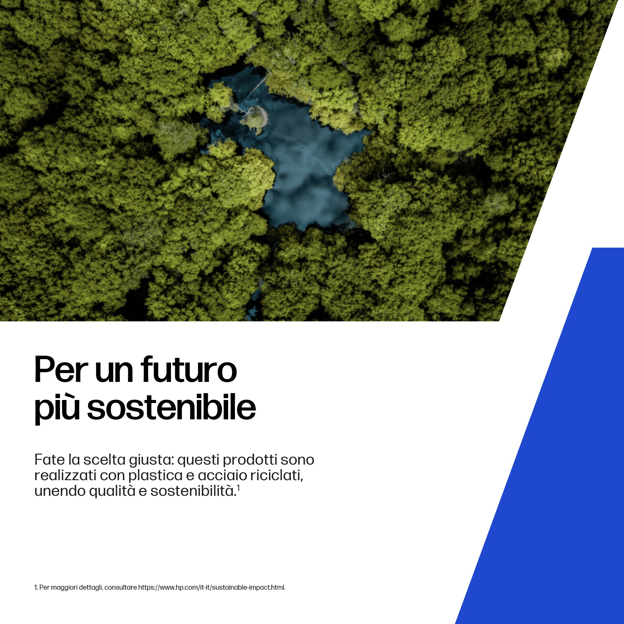 HP presta la massima attenzione all'impatto generato dai suoi prodotti sulle persone, la società e il pianeta. Ecco perché questo dispositivo è certificato EPEAT® Gold[6] con Climate + e l'imballaggio esterno è al 100% di origine sostenibile.[7]