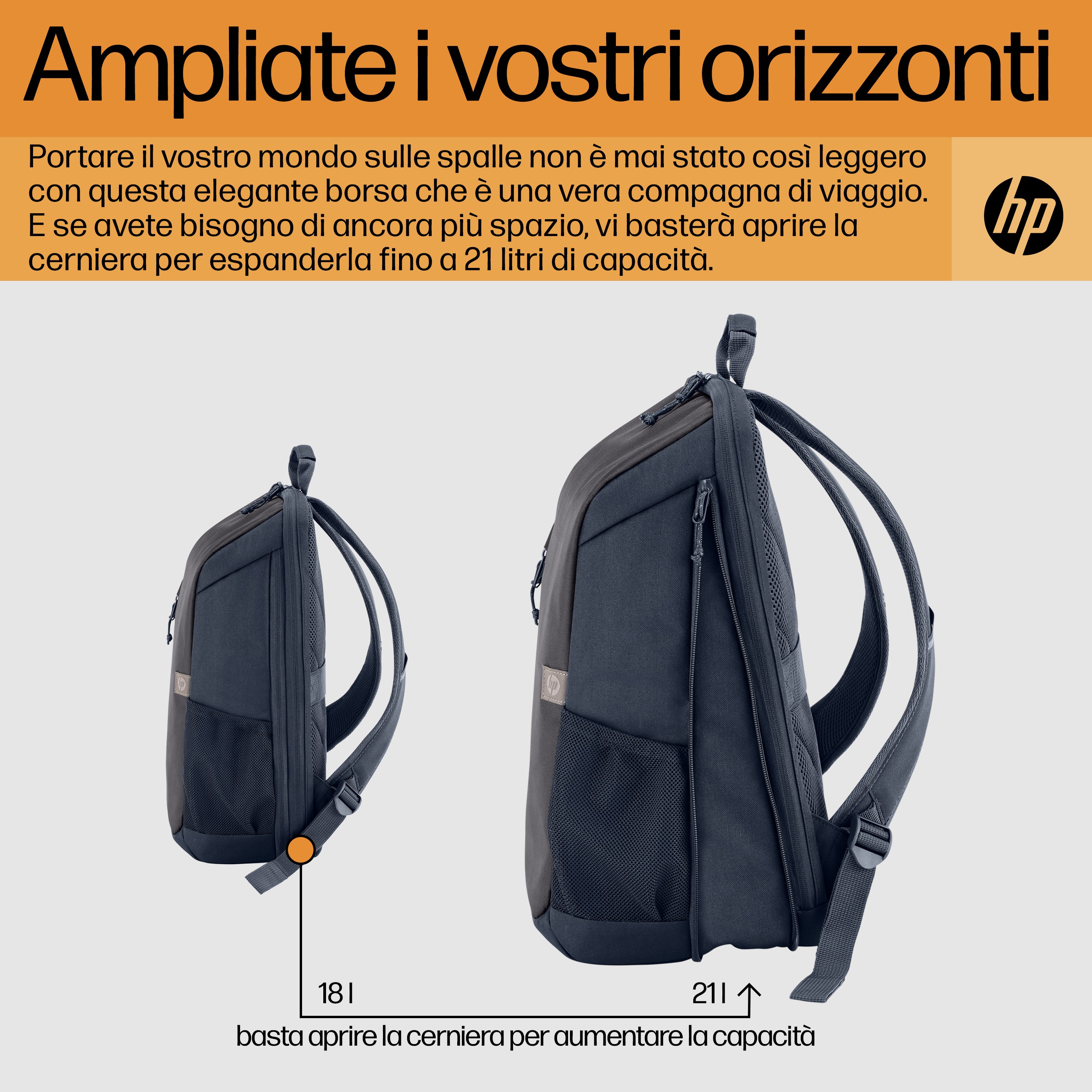 Portare il mondo sulle spalle non è mai stato così facile, con questo compagno di viaggio leggero ed elegante. E se serve più spazio, basta espanderlo fino a una capacità di 21 litri. Con tutto questo spazio, sarete pronti a partire almeno per un weekend.