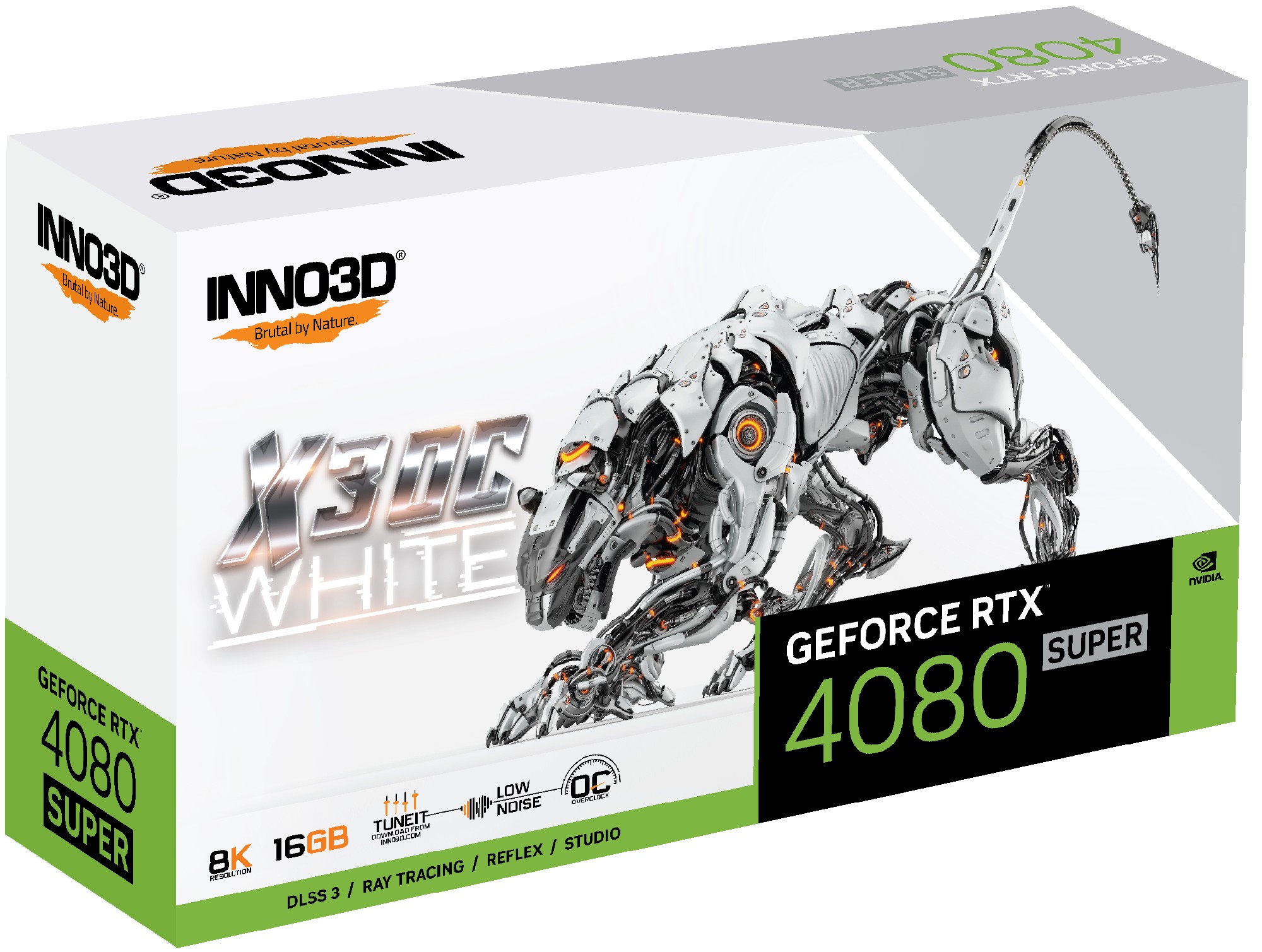 Inno3D GEFORCE RTX 4080 SUPER X3 OC WHITE, GeForce RTX 4080 SUPER, 16 GB, GDDR6X, 256 bit, 7680 x 4320 Pixel, PCI Express x16 4.0