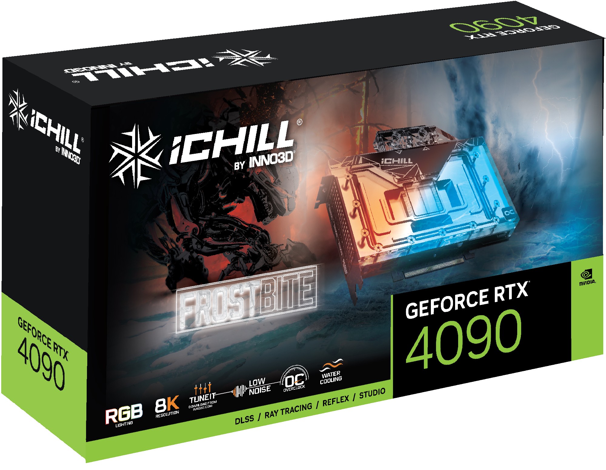 Inno3D GeForce RTX 4090 ICHILL FROSTBITE, GeForce RTX 4090, 24 GB, GDDR6X, 384 bit, 7680 x 4320 Pixel, PCI Express x16 4.0