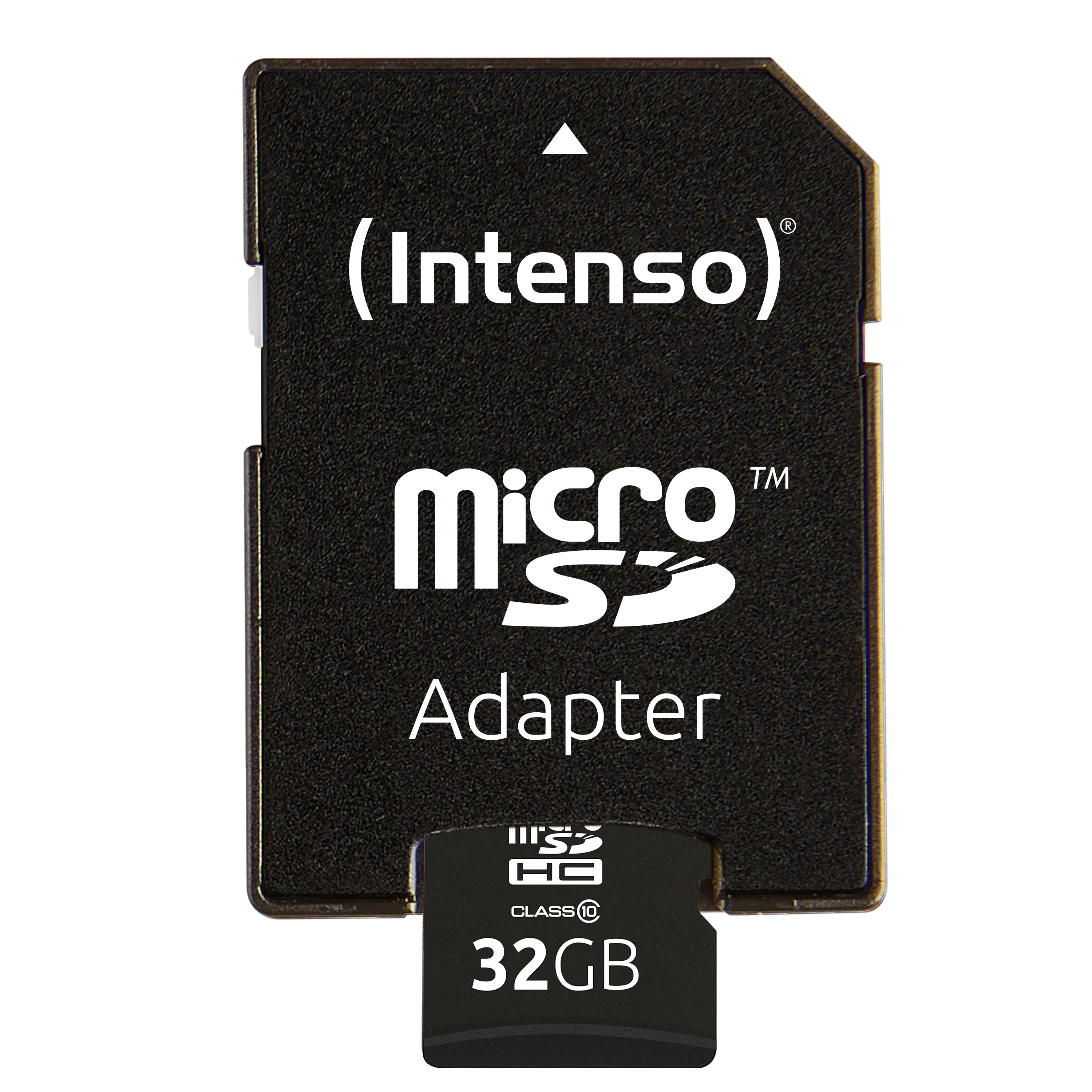 Intenso 32GB MicroSDHC, 32 GB, MicroSDHC, Classe 10, 25 MB/s, Resistente agli urti, A prova di temperatura, Resistente all’acqua, A prova di raggi X, Nero