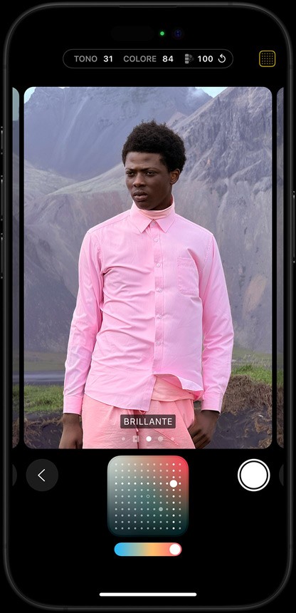Grazie alla potenza del chip A18 Pro, puoi vedere in anteprima lo stile applicato, come avviene per il color grading professionale in tempo reale.
